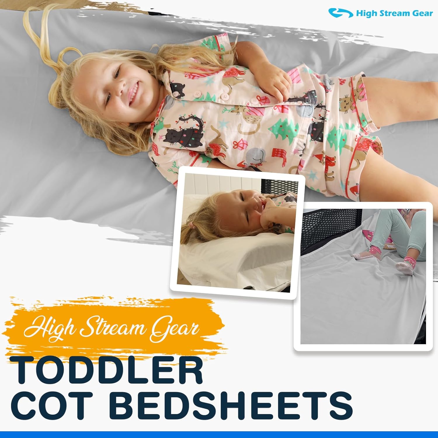 Bed sheet for High stream gear’s Toddler Cot Camping Bed: Fitted Sheet Specifically for HSG’s Kids Travel Camping Bed, Great for Outdoors and Young Guests at Home (Gray)