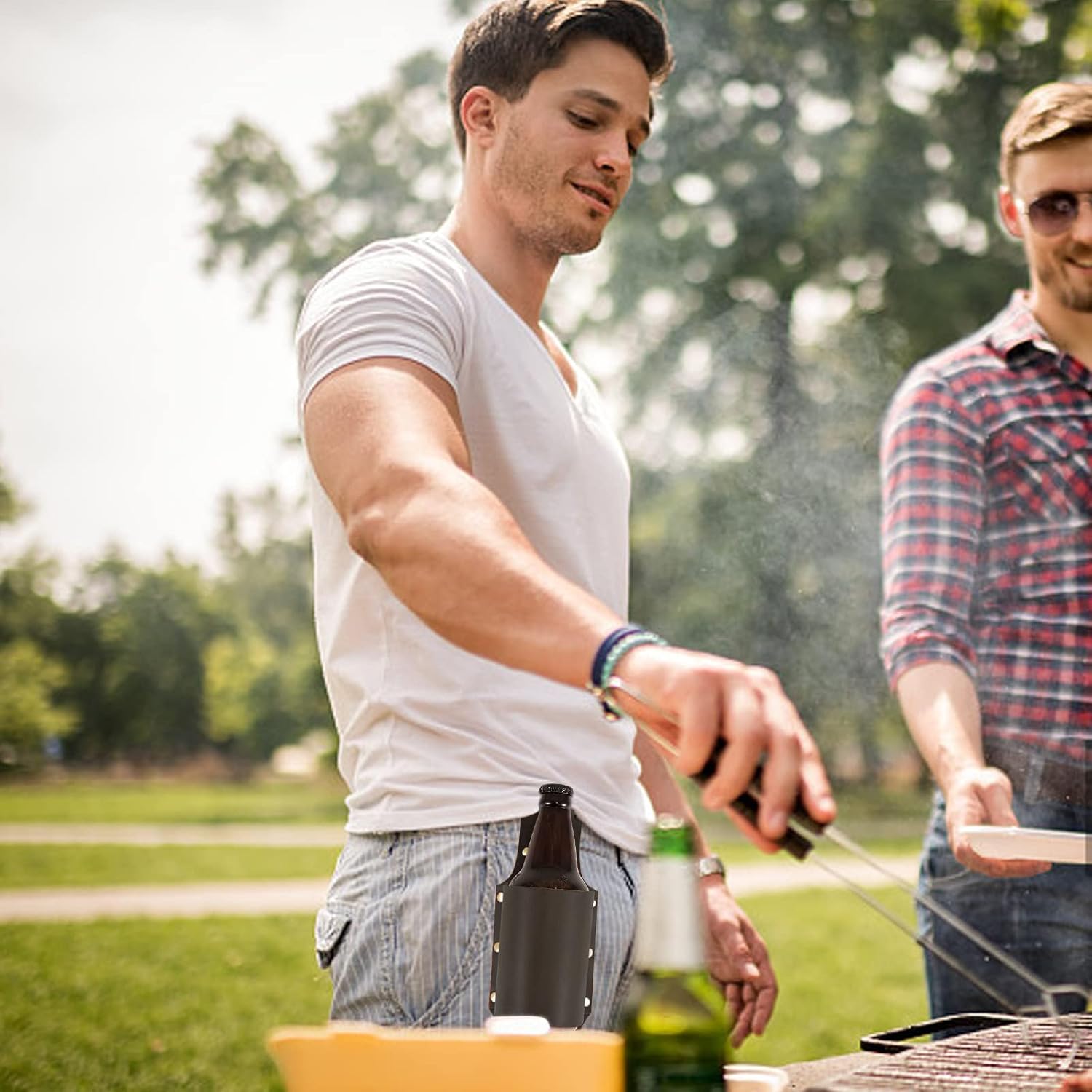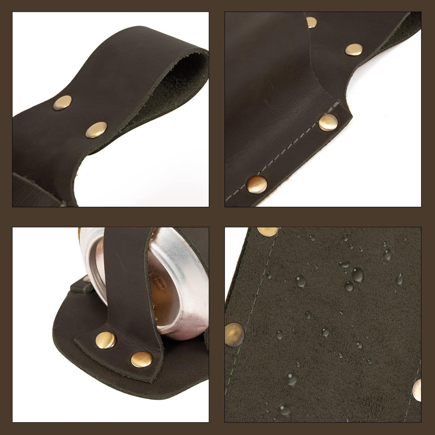 Beer Holder,Leather Beer Holster Bottle Holders,Beer Belt Holder Beer Gifts for Men,BBQ/Grilling Gifts for Travel Camping Party Outdoor,Cool Beer Accessories Gadgets for Men