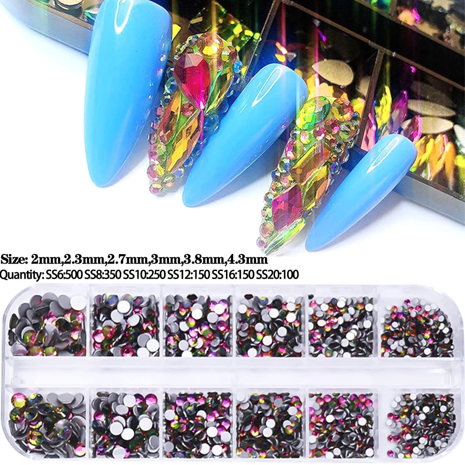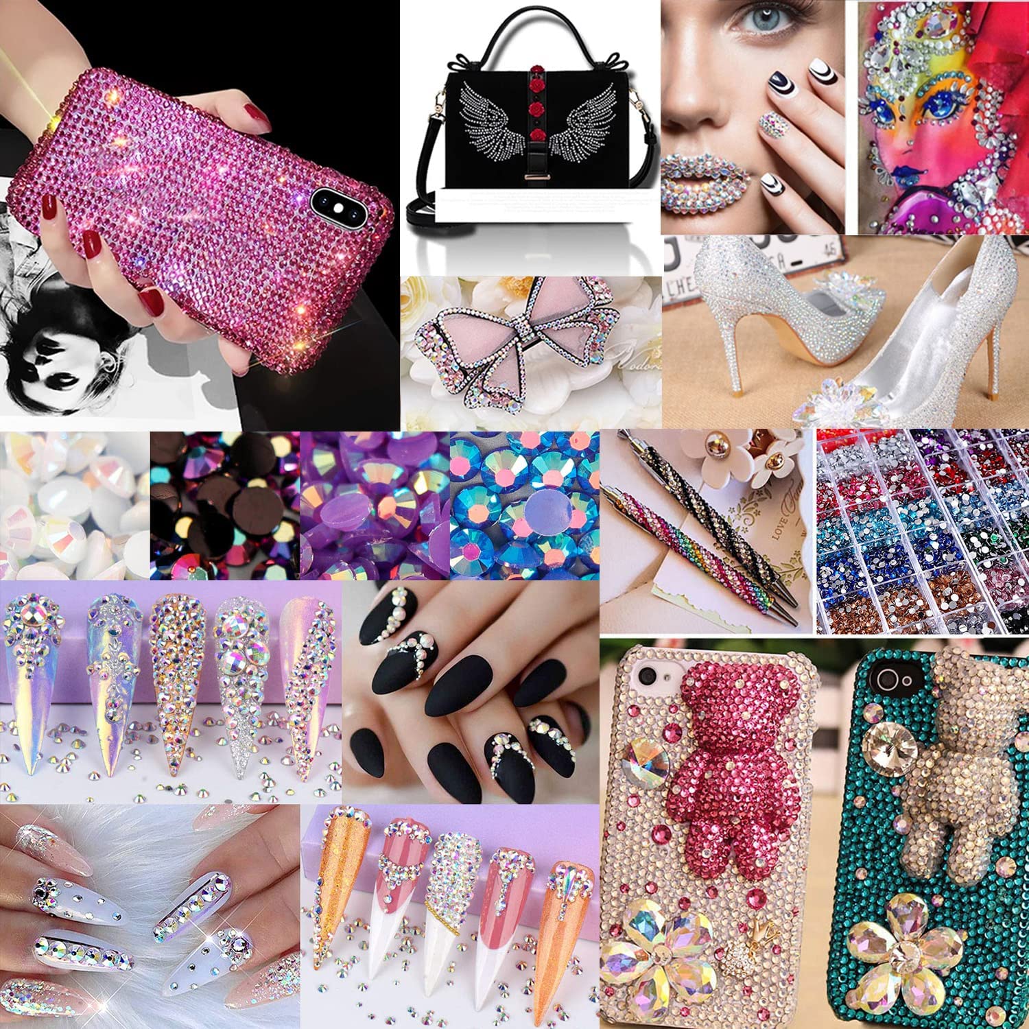 ★Rhinestone for Nails : The Symphony high quality K9 Glass Rhinestone Nail Art Salon Glass Bead Aurora Candy Color Crystal DIY Nail Decoration for nails are suitable for nail decoration, nail art design, Halloween & Christmas Makeup, make the nails sparkly and amazing bling bling. But not stop at this, nail jewels rhinestones can also be used to for crafts, like decorating shoes, wedding dress, jeans, phone case, cars, and what ever project DIY.