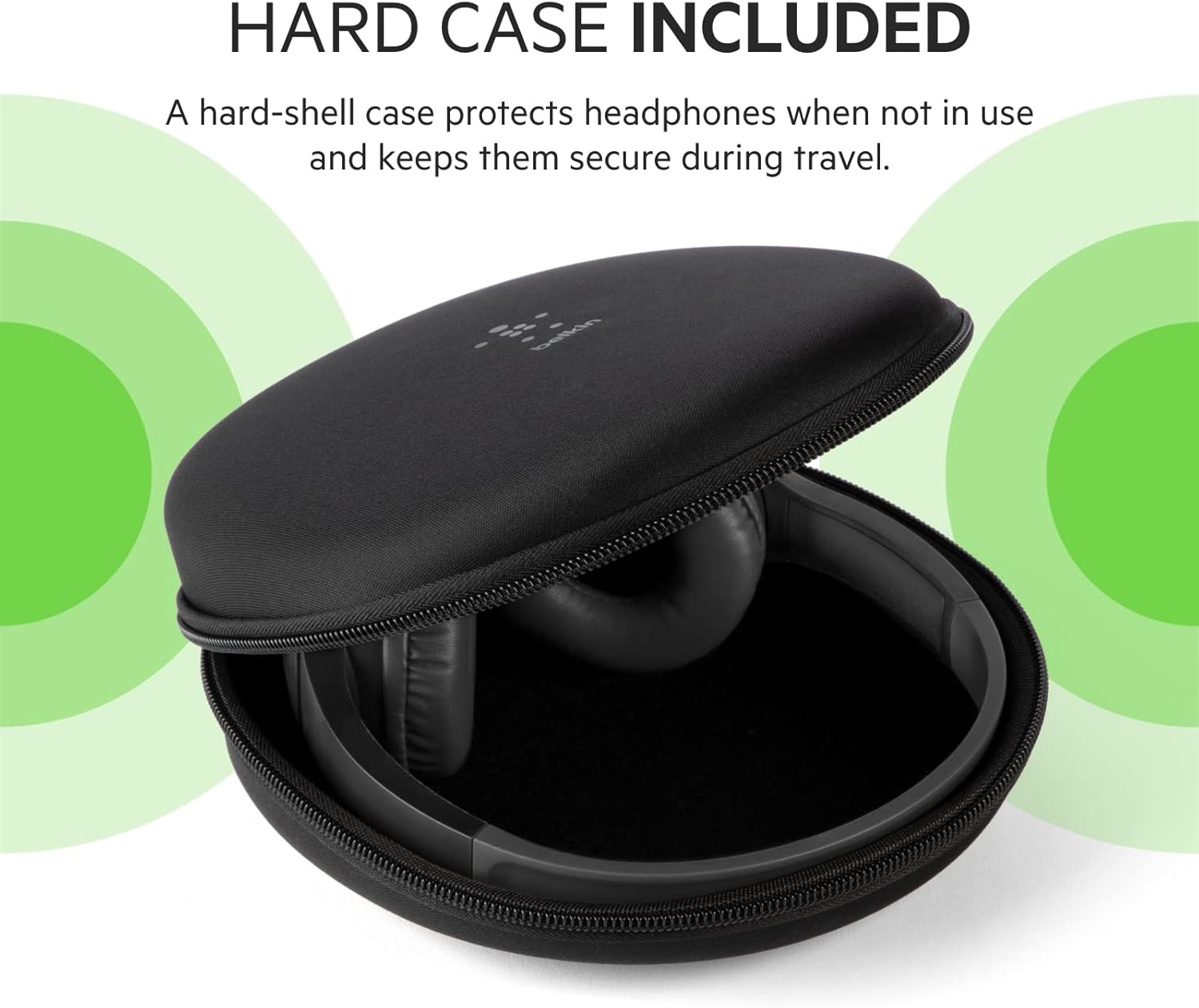 Belkin SoundForm Mini – Wireless Bluetooth Headphones for Kids with 30H Battery Life, 85dB Safe Volume Limit, Built-in Microphone – Kids On-Ear Earphones for iPhone, iPad, & More – Black w/ Case