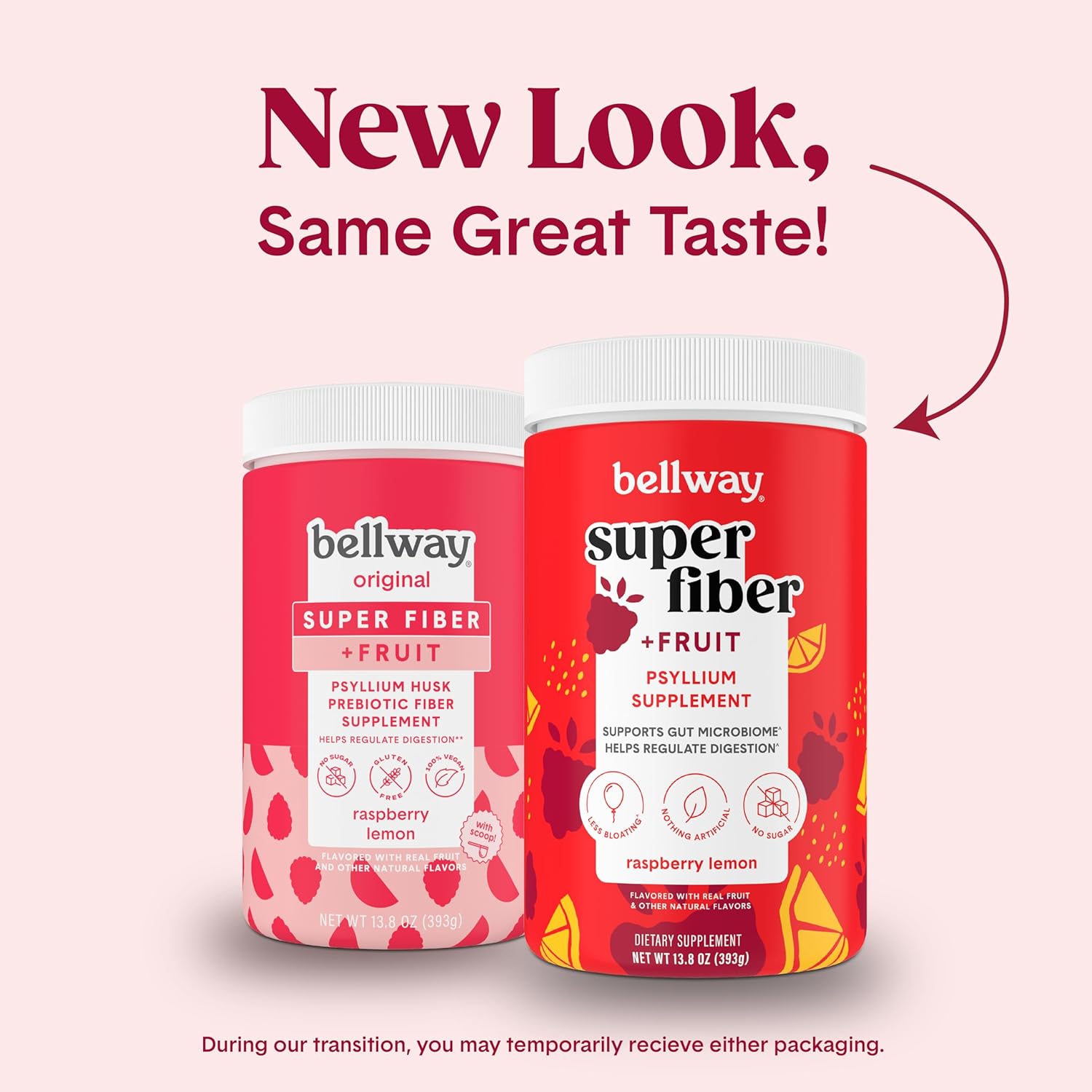 Bellway Super Fiber Powder + Fruit, Sugar Free Organic Psyllium Husk Powder Fiber Supplement for Regularity, Bloating Relief & Gut Health, Non-GMO, Plant-Based, Raspberry Lemon (13.8 oz)
