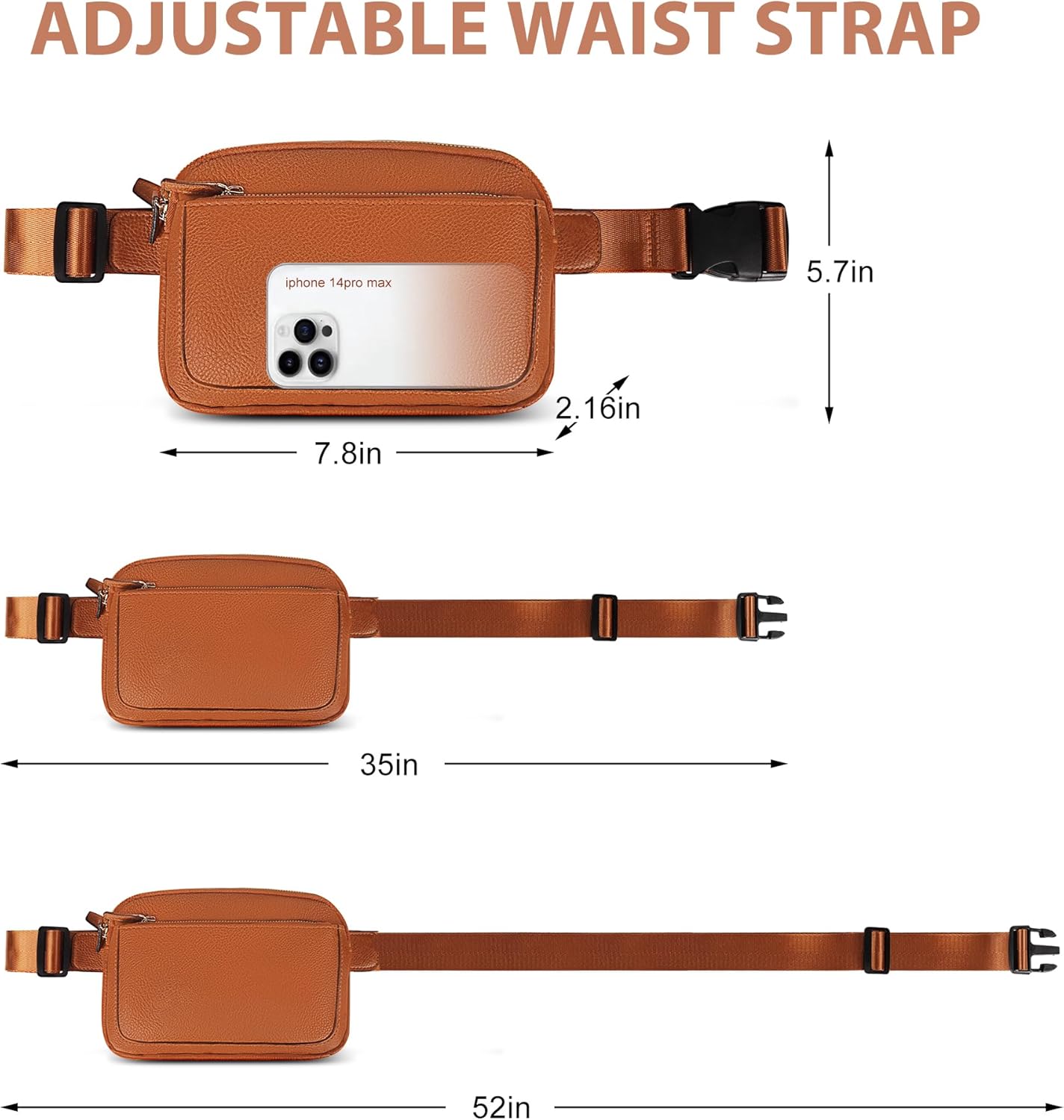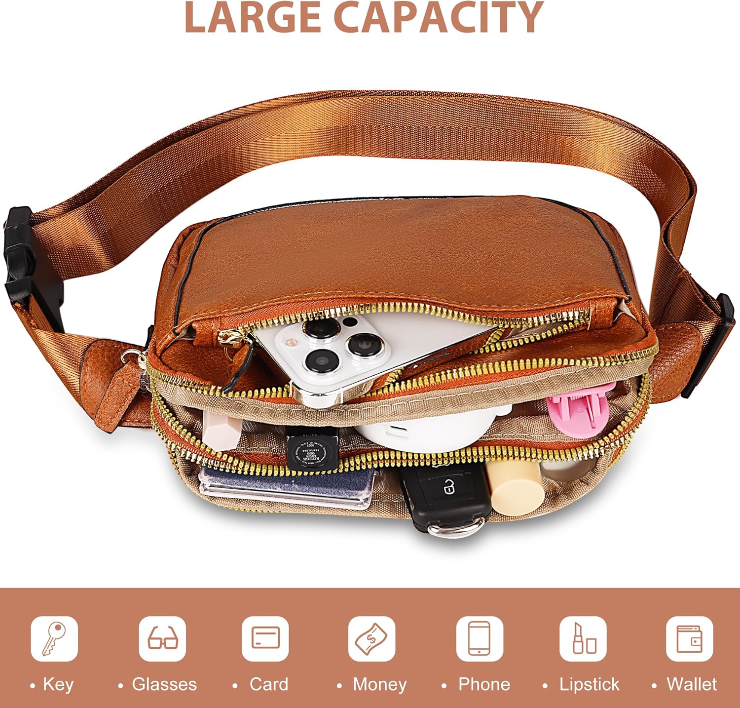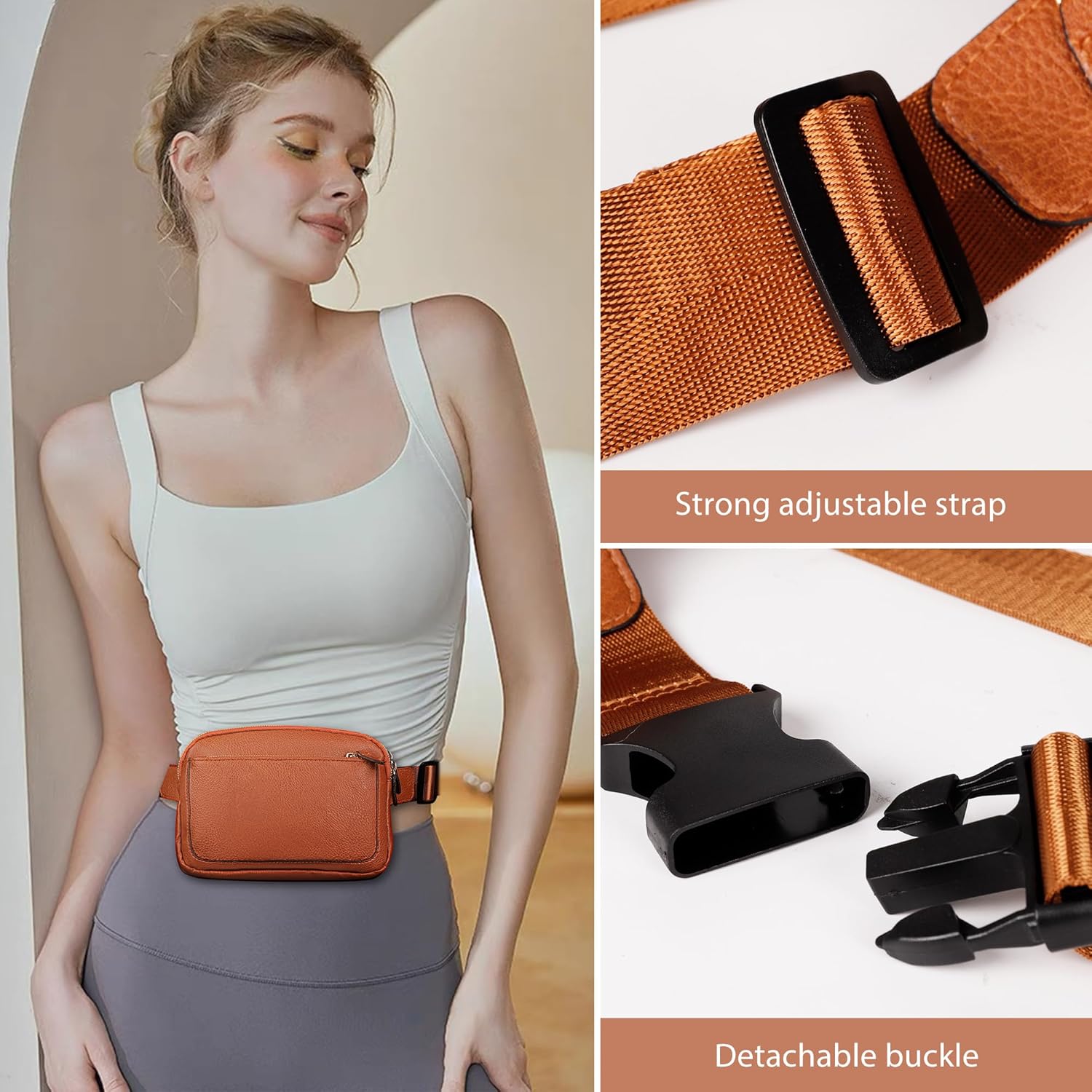 Belt Bag for Women,PU Leather Fanny Packs for Women Crossbody Trendy Waist Bag with Adjustable Strap Running Traveling Hiking (Brown)