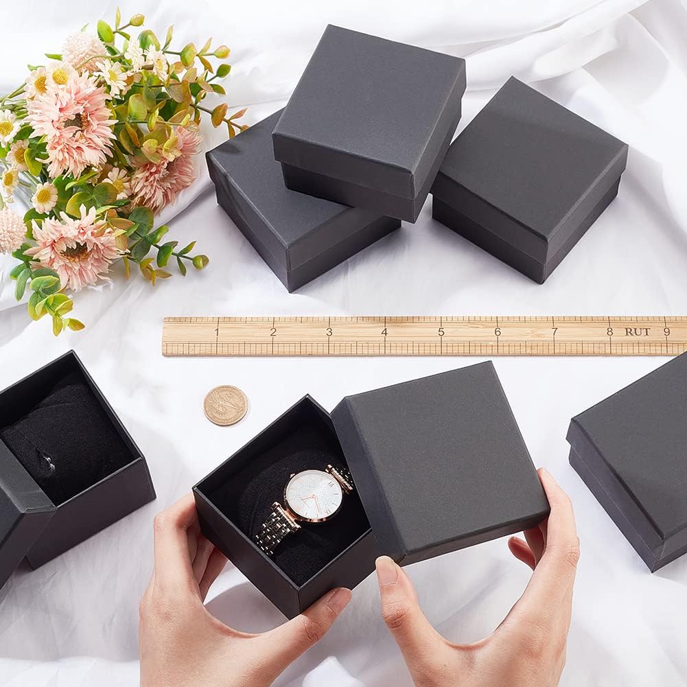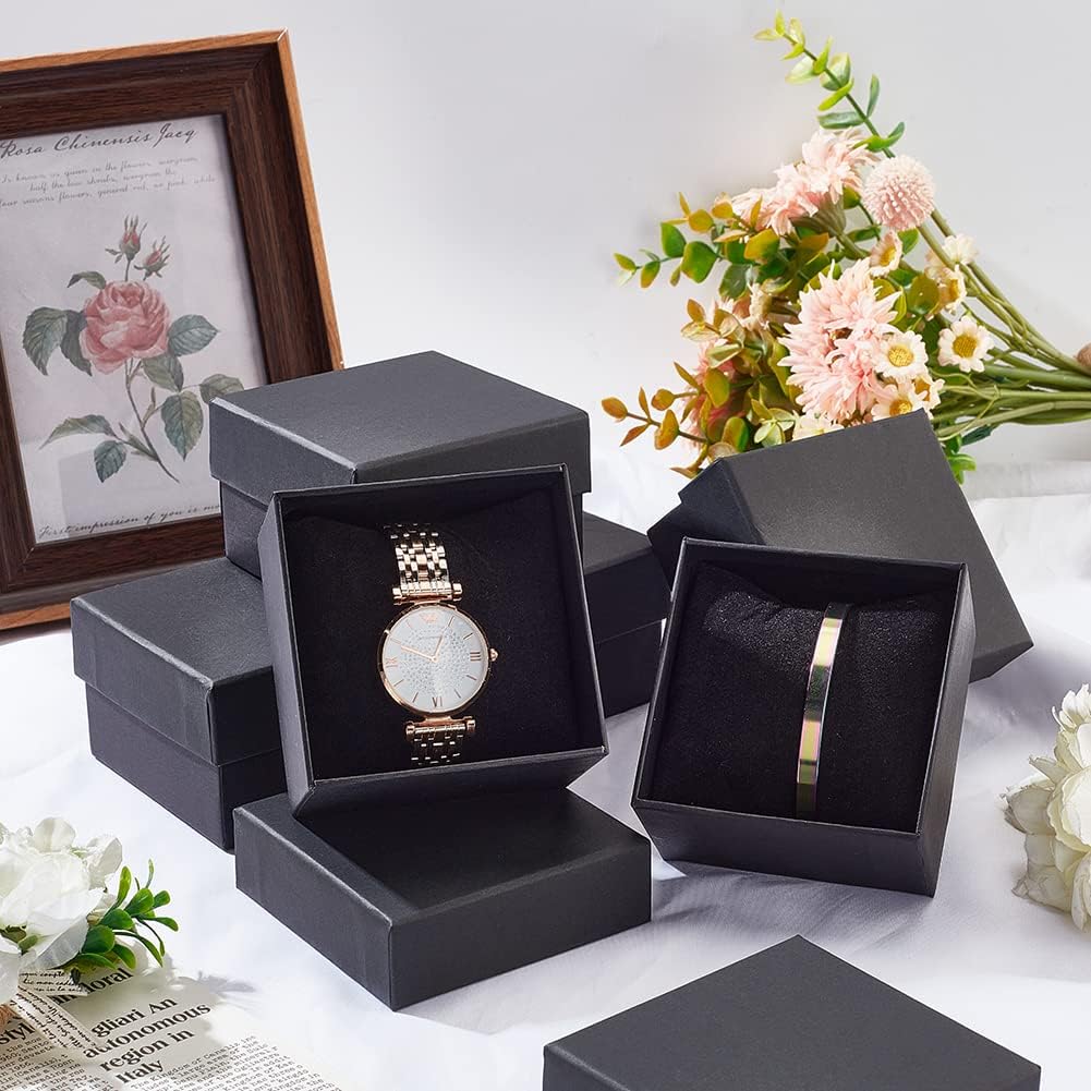 BENECREAT 6 Pack Kraft Square Cardboard Present Gift Boxes for Bangle Wrist Watch, Christmas Gifts Packaging, Bracelet Jewelry Storage – 3.5×3.5×2 Inches