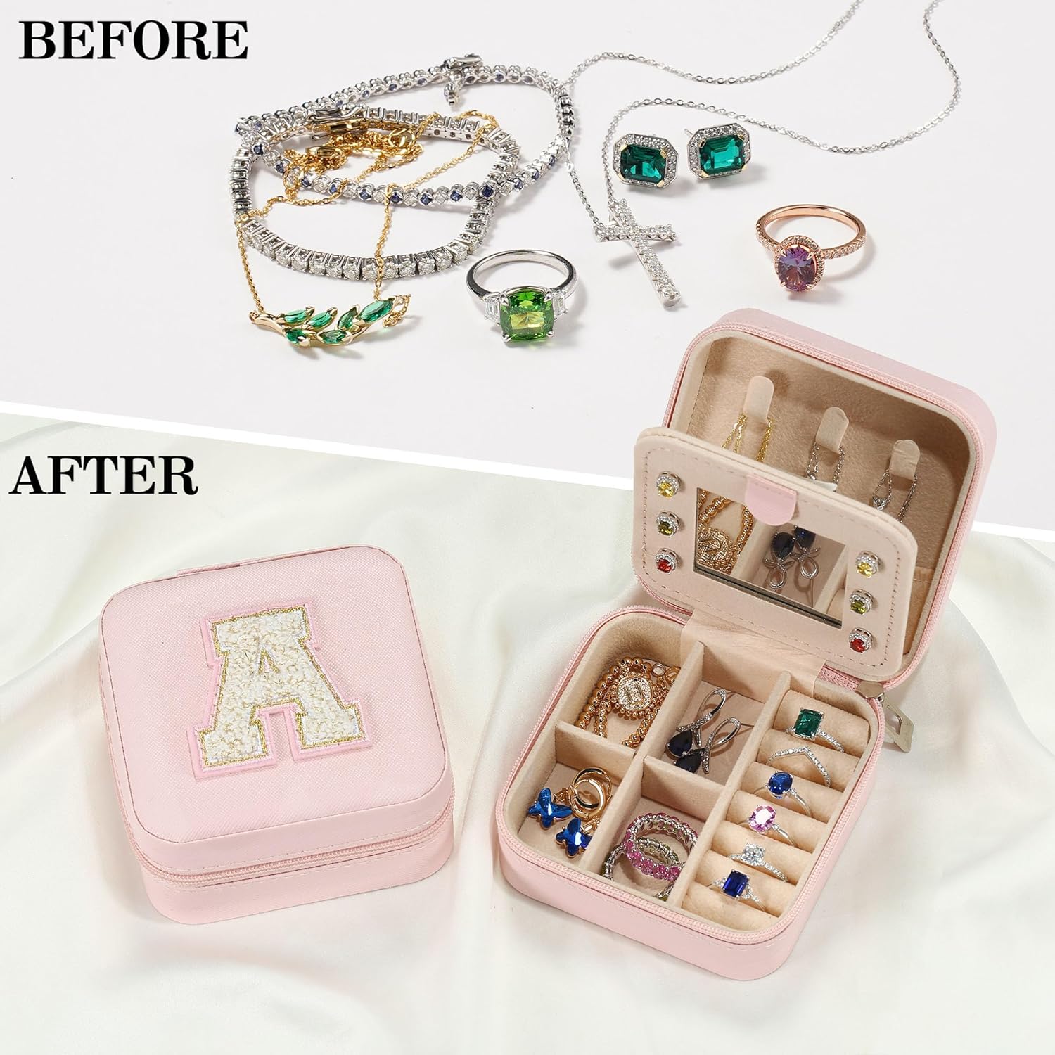 【PERFECT GIFTS FOR WOMEN GIRLS】Women’s travel jewelry box with 26 initials of your choice, The travel jewelry case is both fashionable and portable. Perfect gifts for mom,daughters,sisters,girlfriends,wife,bridemaid,best friends,bestie on birthdays,Valentine’s Day,Mother’Day, Christmas, New Year, anniversaries and weddings.