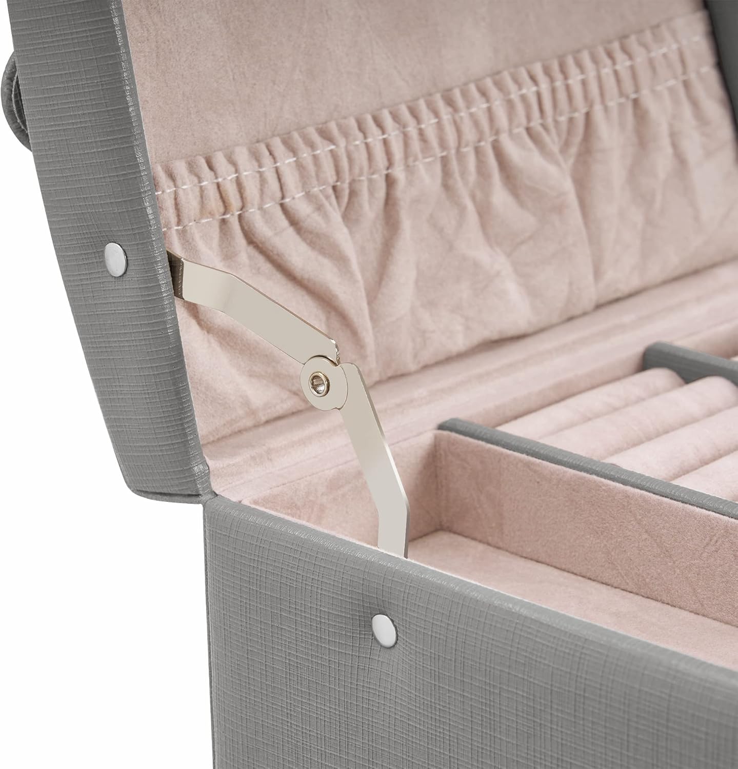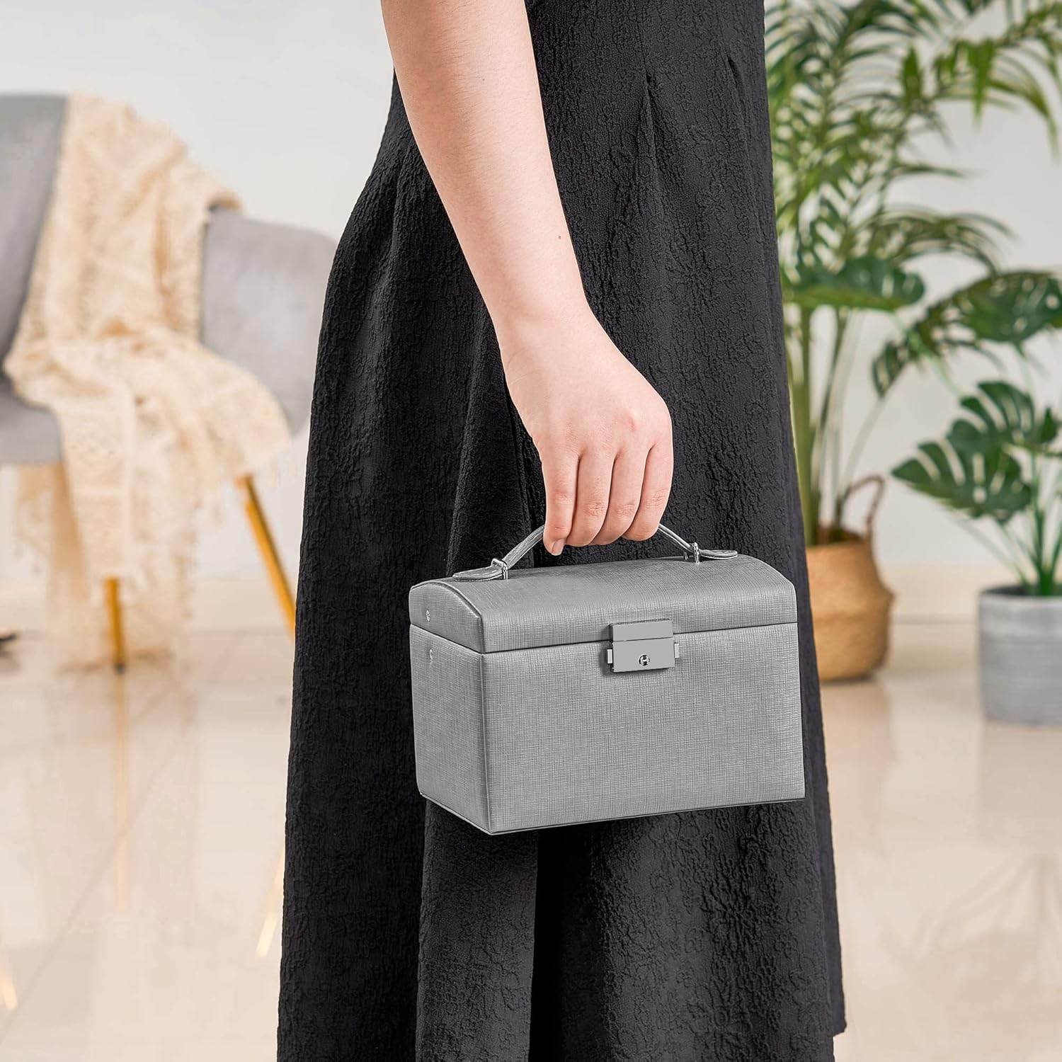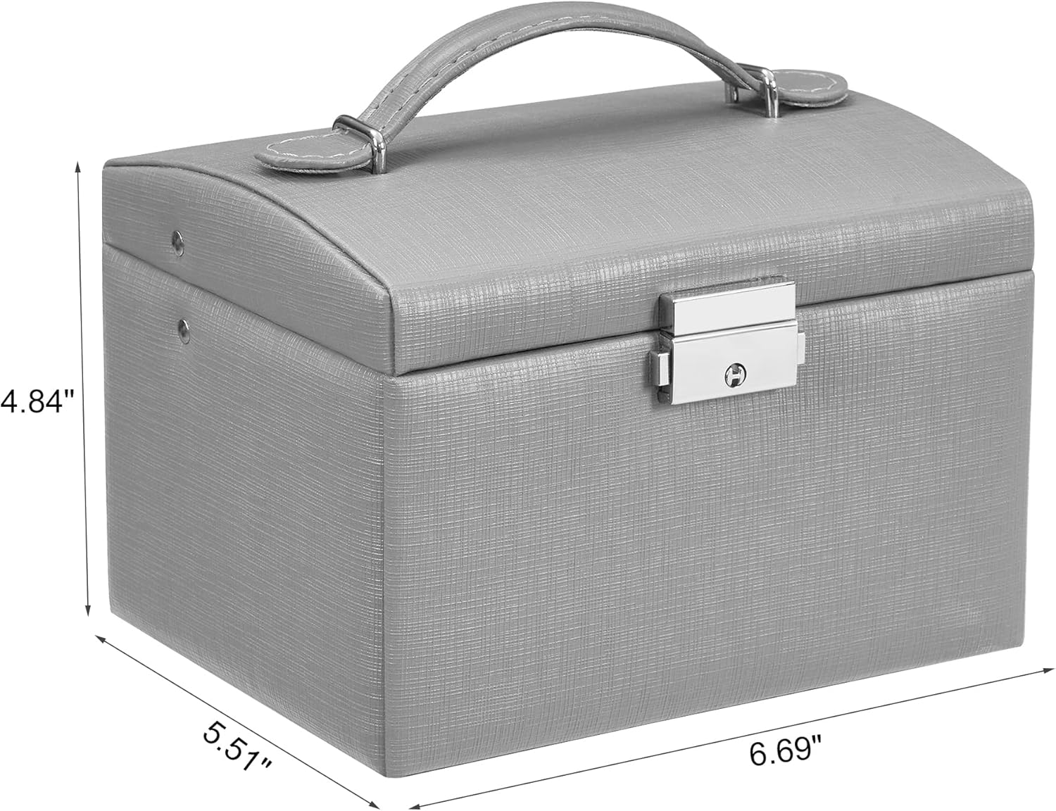 BEWISHOME Jewelry Box for Girls Women,3 Layers Jewelry Organizer Box Gifts for Girls Women, Mini Jewelry Travel Case with Lock, PU Leather Jewelry Case for Earrings, Rings, Necklaces Grey, SSH88H