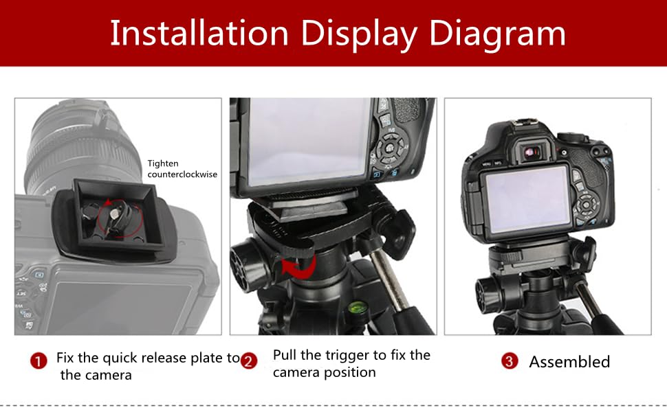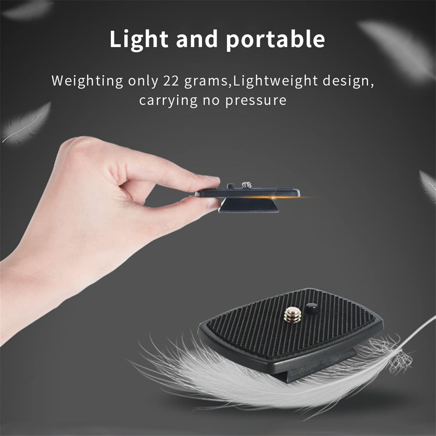 Material-Quick release plate use of high‑quality Plastic and Anti-skid rubber, surface painting, anti‑rust and corrosion resistance. Anti-skid-Anti-skid rubber base and safety pin to protect your camera from sliding. Quick Attach and Detach-Quick release plate allows you to quickly and easily attach and detach your camera from the tripod. Stable Performance-High-quality quick release plate let you fix your camera, lens or camera accessories quickly and safely. Easy to Assemble-Easy to install and use, very practical and conveneint.