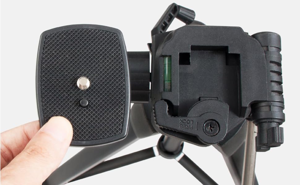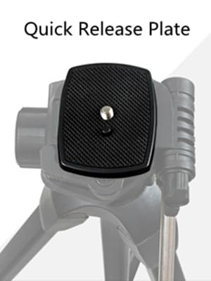 Quick release plate allows you to quickly and easily attach and detach your camera from the tripod.