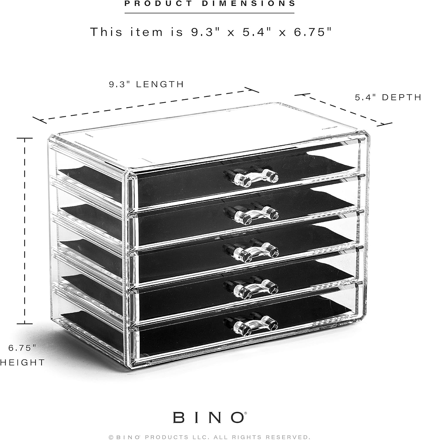 BINO THE MANHATTAN SERIES Acrylic Makeup Drawer Organizer- 5 Drawers | Clear Beauty Organizers and Storage| Cosmetic & Makeup Drawer| Home Organization| Jewelry & Vanity Accessories Drawers