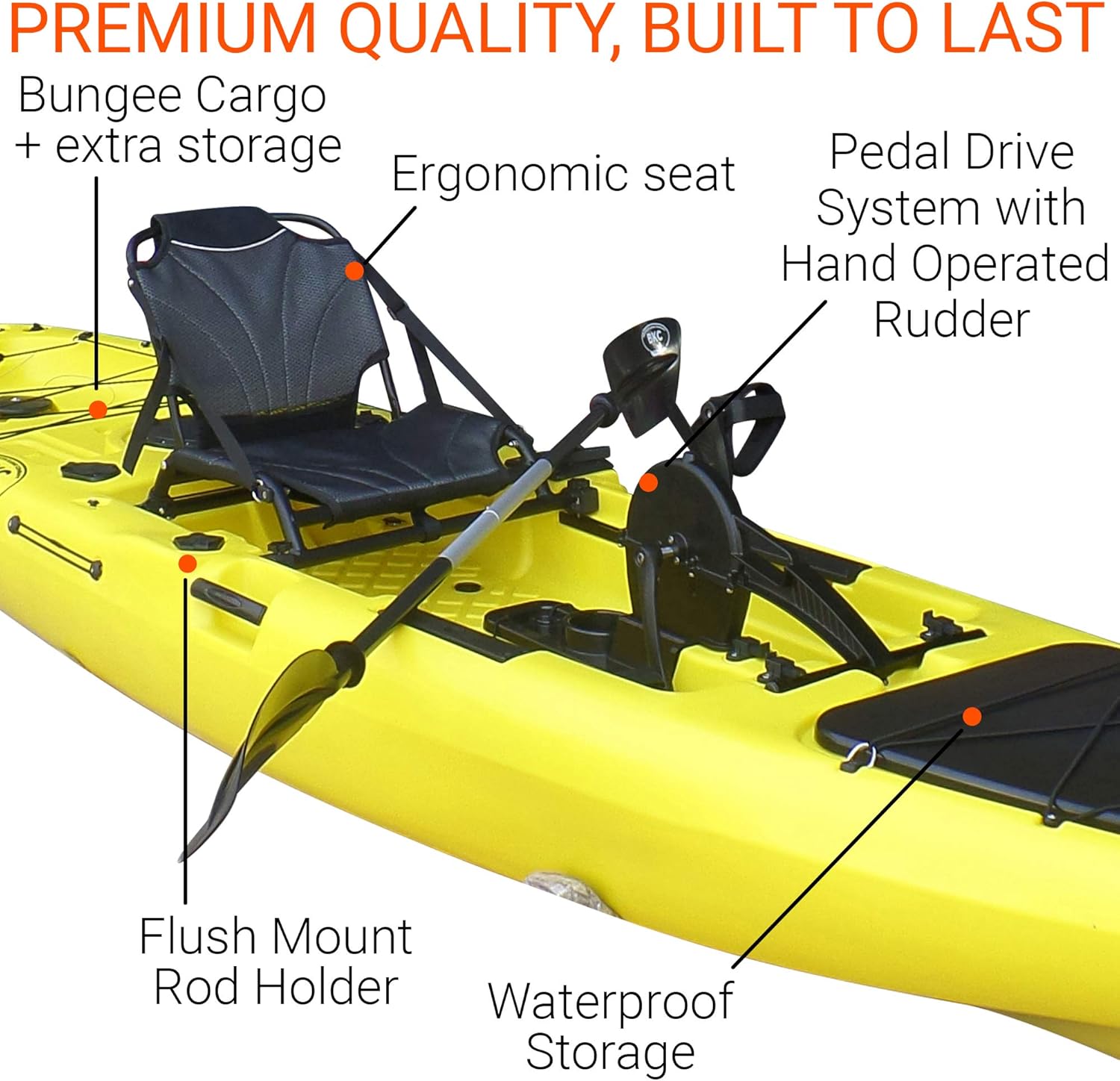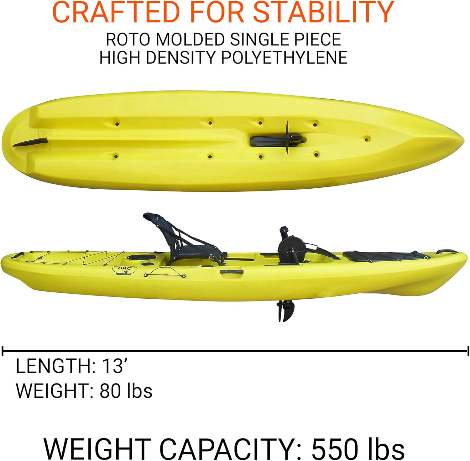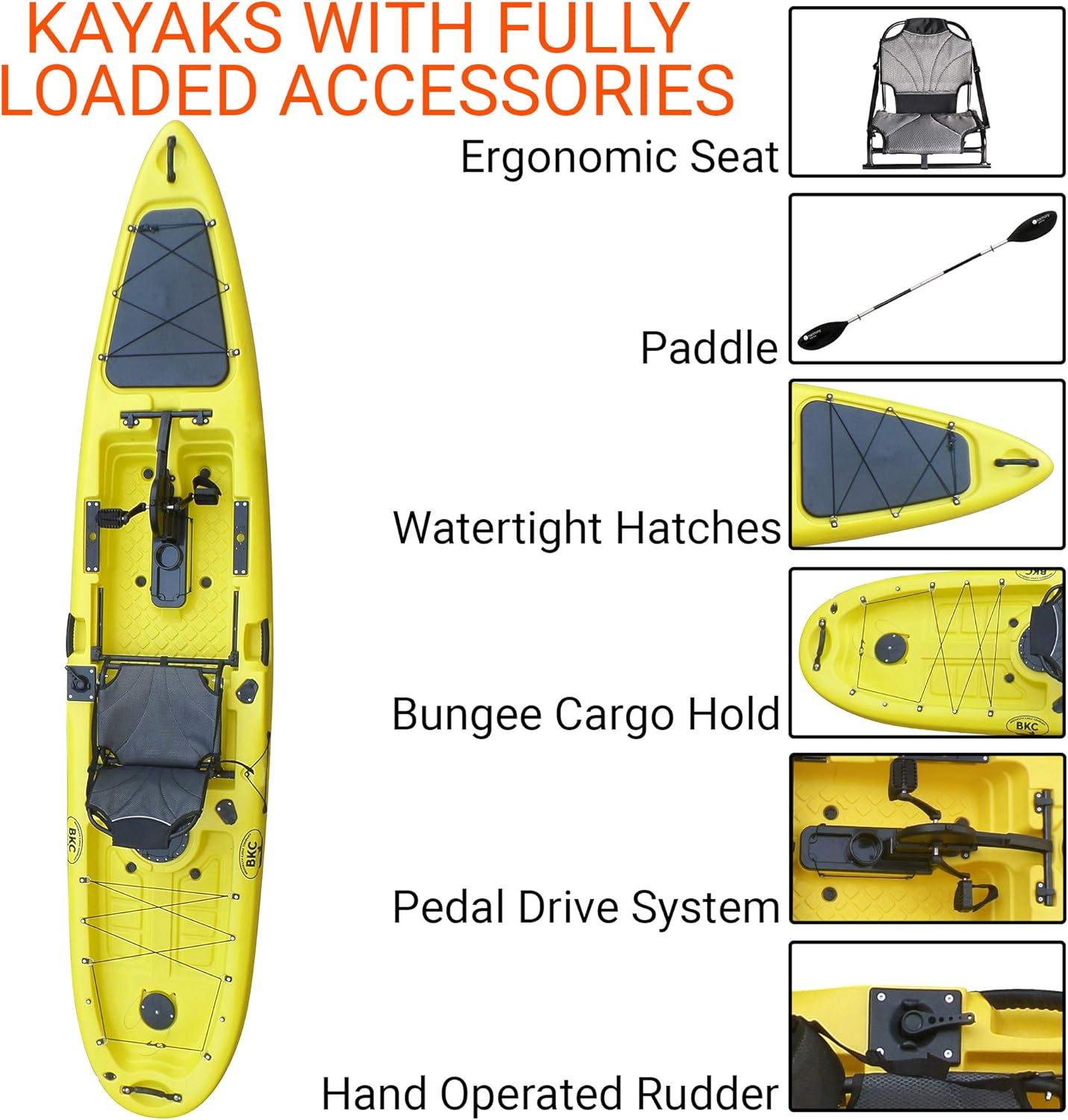 THE PERFECT KAYAK FOR OUTDOOR FUN: Our Brooklyn Kayak Company BKC PK13 kayak was created to cruise. Bicycle style pedals turn a high efficiency propeller, allowing you to tuck your paddle into the paddle keeper and go hands-free. The hand operated rudder controls will keep you tracking while underway and enhance your steering capabilities, allowing you to make sharp and quick turns.