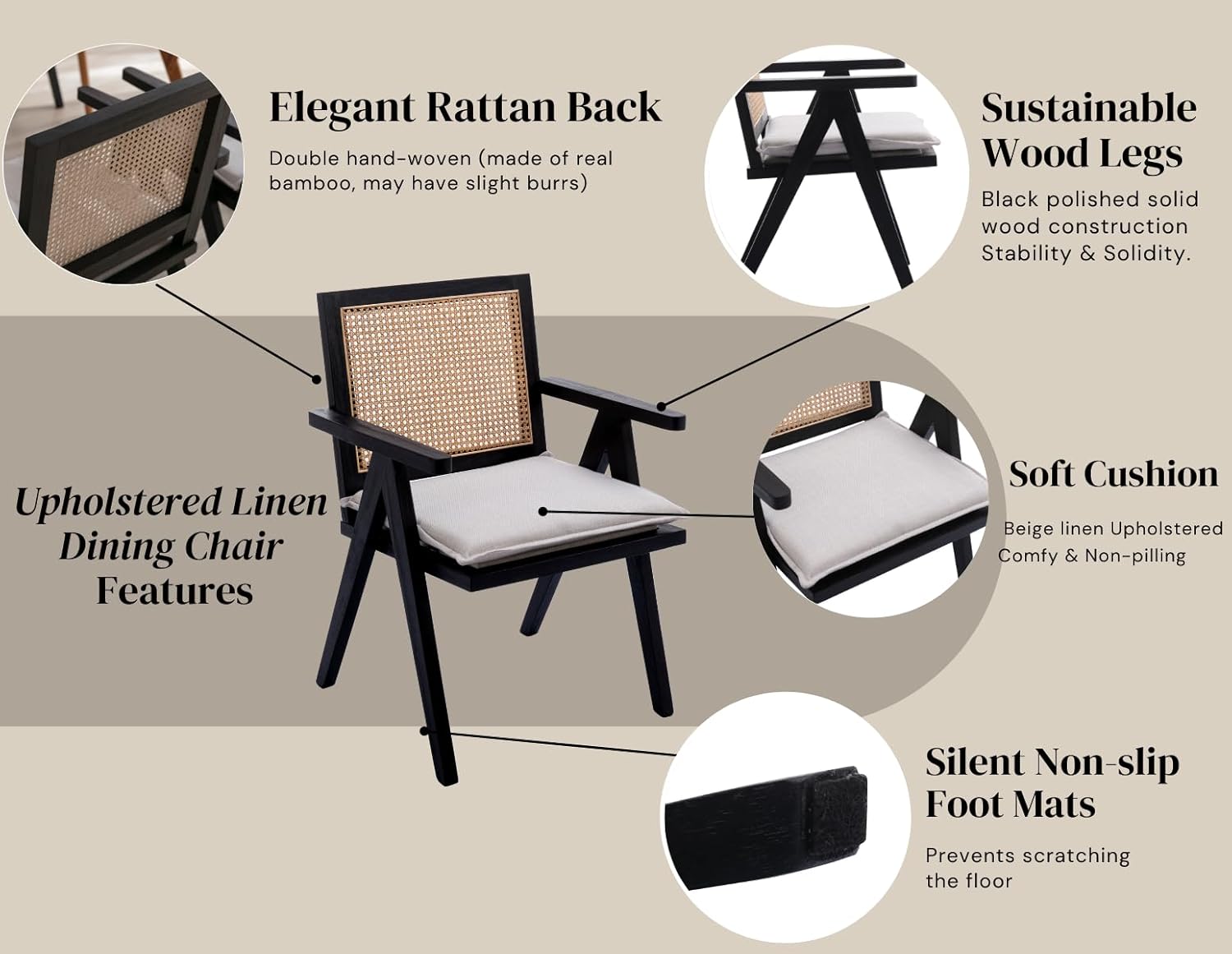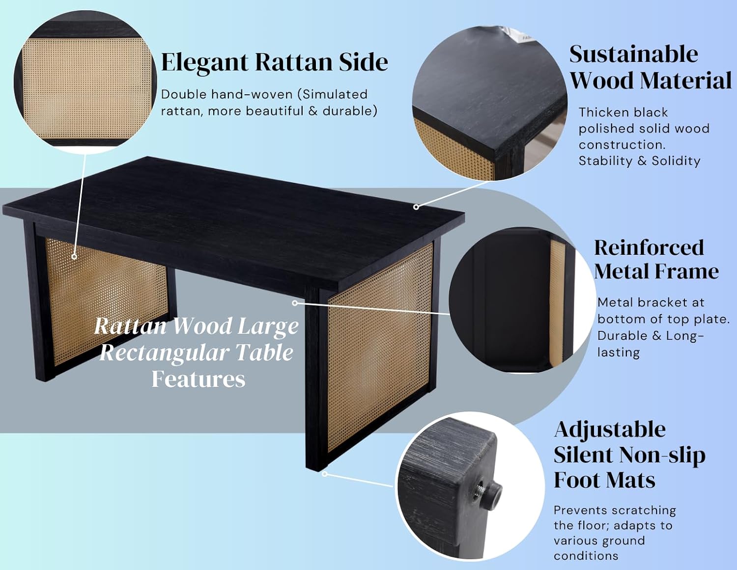Be the first to review “Black Wood Dining Table Set for 4-6 Person, Rattan Rectangular Kitchen Table w/Rattan Bench & 2 Chairs, 4-Piece Farmhouse Home Kitchen Furniture Set for Dining Room/Restaurant/Breakfast”