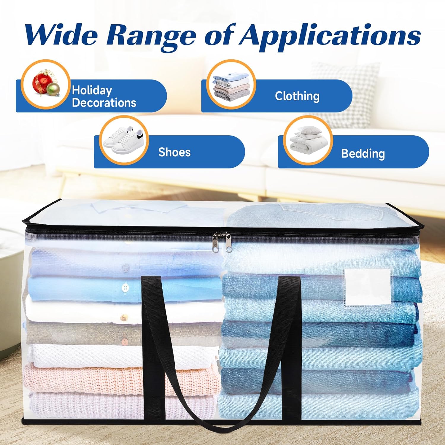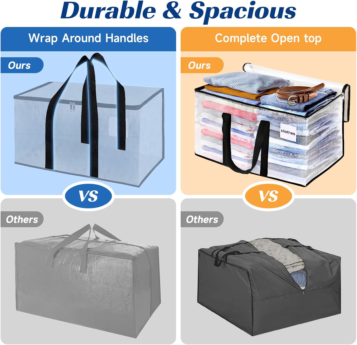 [Double Zipper & Open top design] Storage bags have a high-quality double zipper head, which is more convenient for you to open the storage bags. And our moving bags are designed with a large opening at the top to make it easy for you to put in and take out your items, and the transparent material design allows you to quickly find out your things.