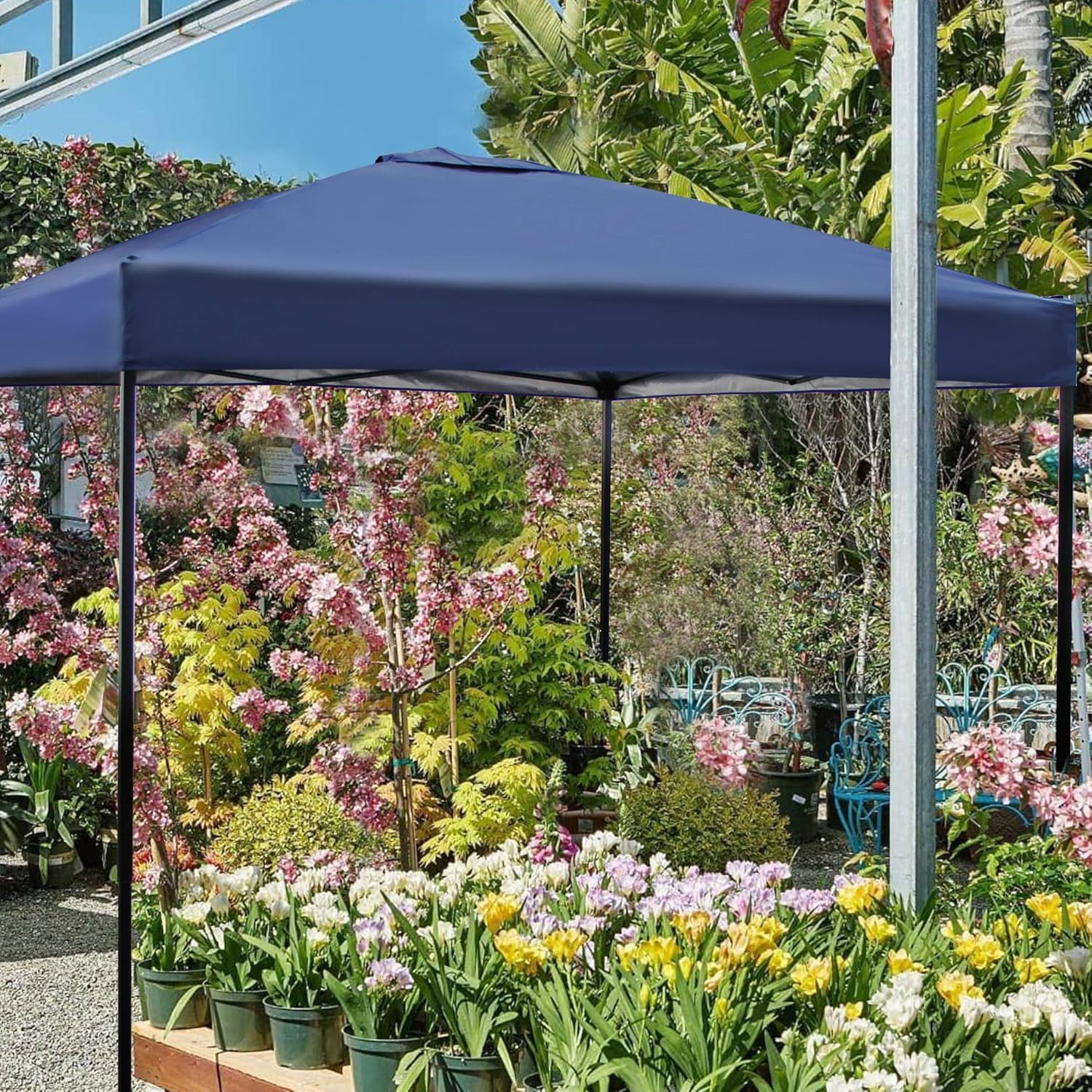 The pop-up canopy sets up in seconds thanks to its folding steel frame, no tools needed. Power-coated steel and frame ensures rust resistance and durable, long-lasting performance, its adjustable legs, extra stakes and lines add extra stability for windy conditions.