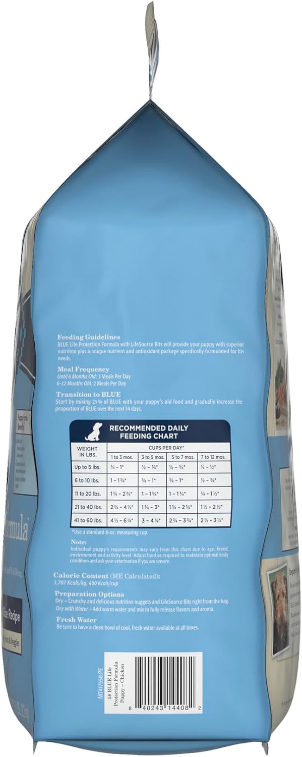 PACKAGING MAY VARY: Contains one (1) 5 lb. Bag of BLUE Life Protection Formula Puppy Dry Dog Food, Chicken and Brown Rice