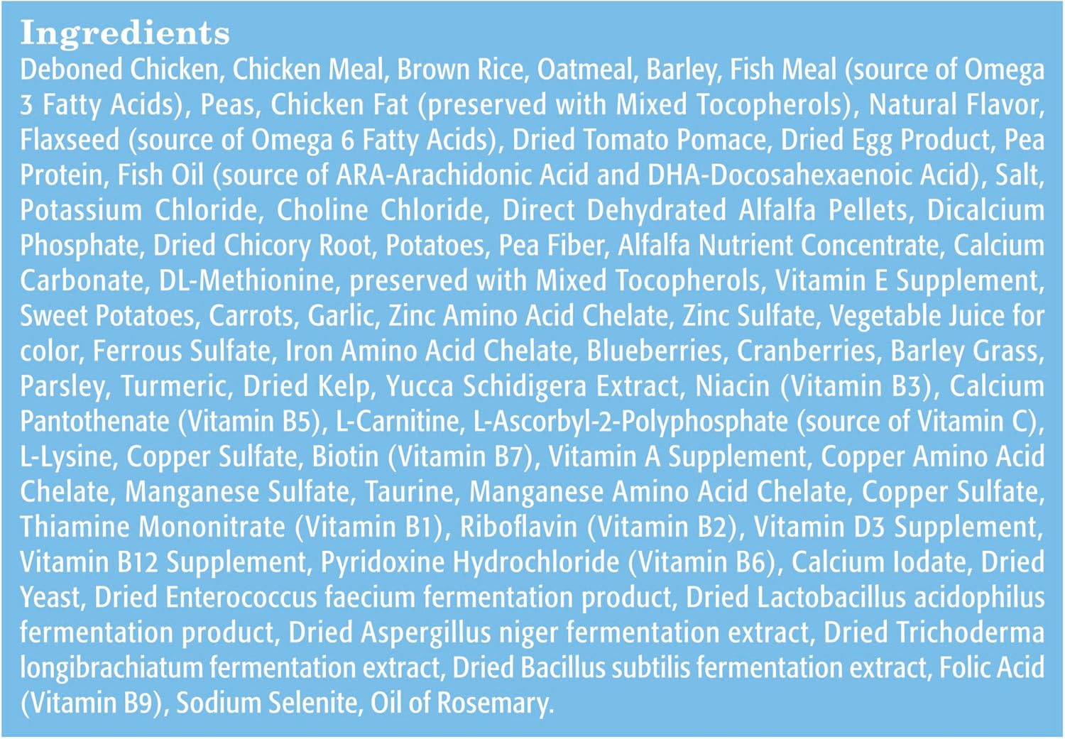 FORMULA ADJUSTMENTS: From time to time, we make slight adjustments to our formulas that do not impact our Guaranteed Analysis nor introduce new allergens and, as such, no transition period between formulas is necessary