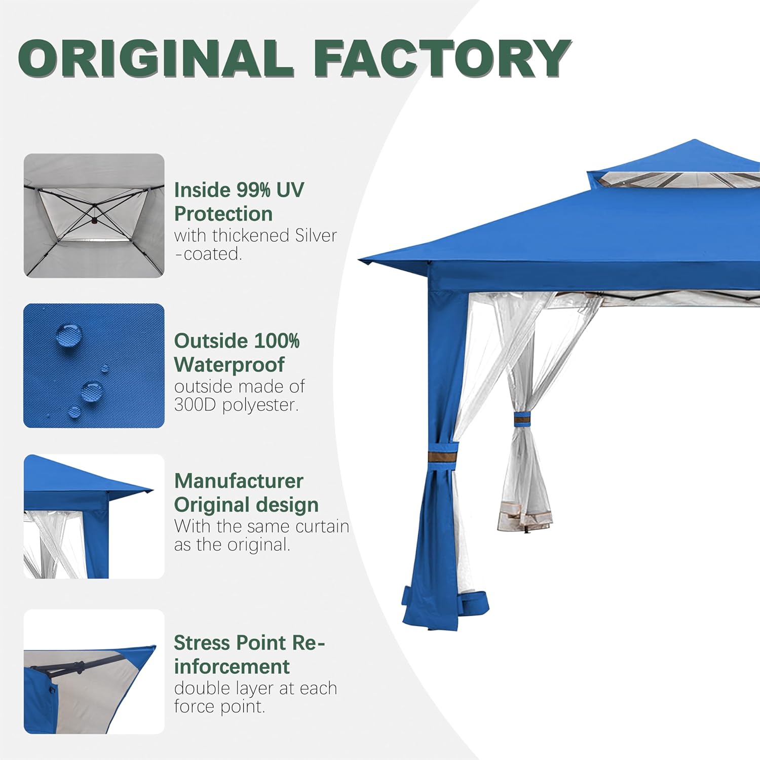 Blue Gazebo Cover Compatible with Master and Roof Compatible with ABC 13×13 – Outdoor Canopy Tent, Will Not Fit Other Similar Looking Models.