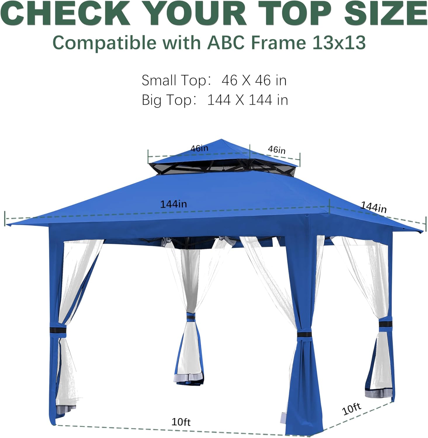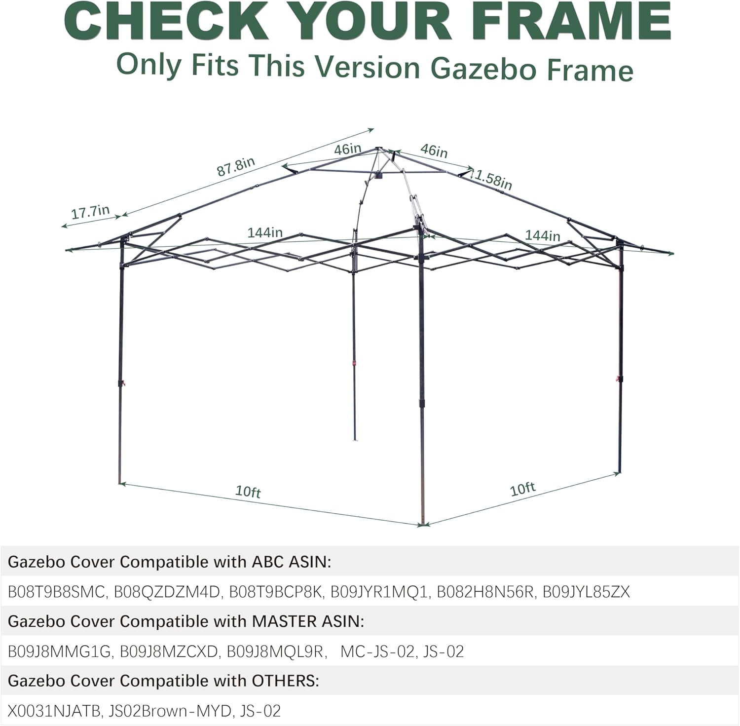 ✅Replacement Gazebo Top Only.Canopy Frame and Netting NOT Included.This replacement top was designed specifically for these brand frame.Please do not purchase if your frame isn’t these brand. This replacement top will not fit your gazebo frame.