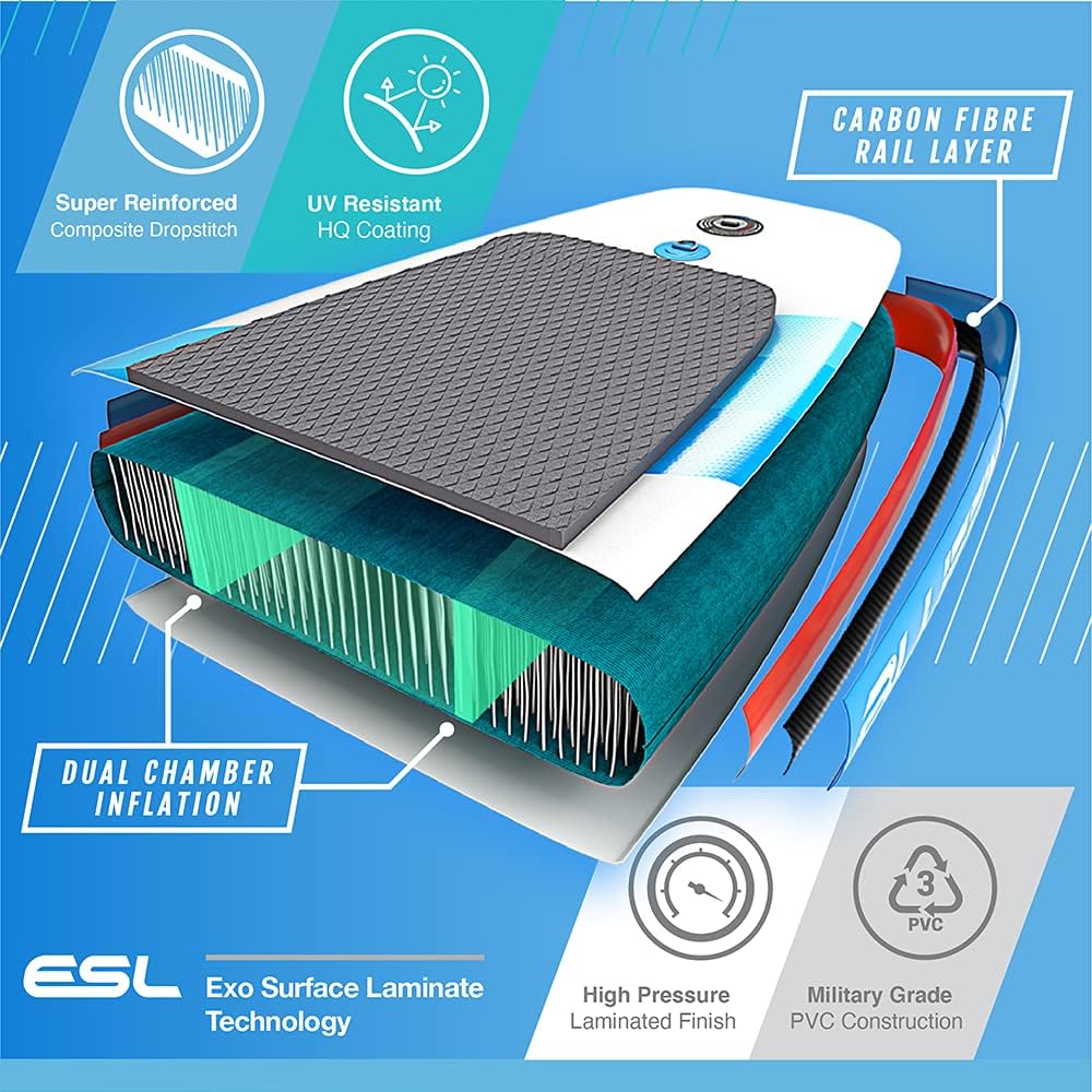 ADVANCED TOURING SUP: The Sprint Carbon is the next-generation in inflatable touring SUP performance, with carbon stiffening rails (FRS: Flex Reduction System) & AIR DUO dual inflation chamber technology combining to make the stiffest touring SUP this side of hardboards. The added sturdiness & stability makes this board more appealing for general paddlers looking for a gateway into touring, giving you all the balance & confidence that you need to take your SUP skills to the next level.