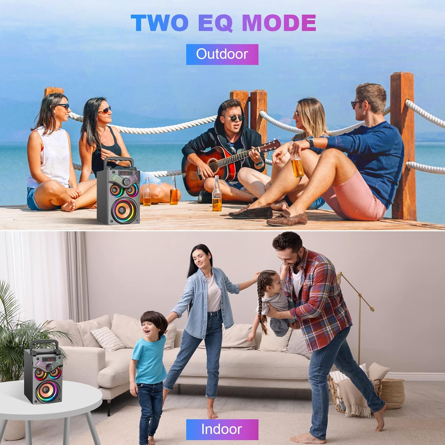 Bluetooth Speakers, Portable Wireless Speakers with Subwoofer, Bluetooth 5.0, LED Colorful Lights, FM Radio, Remote, EQ, Loud Stereo Sound Deep Bass Sound Boombox System for Outdoor Home Party Camping