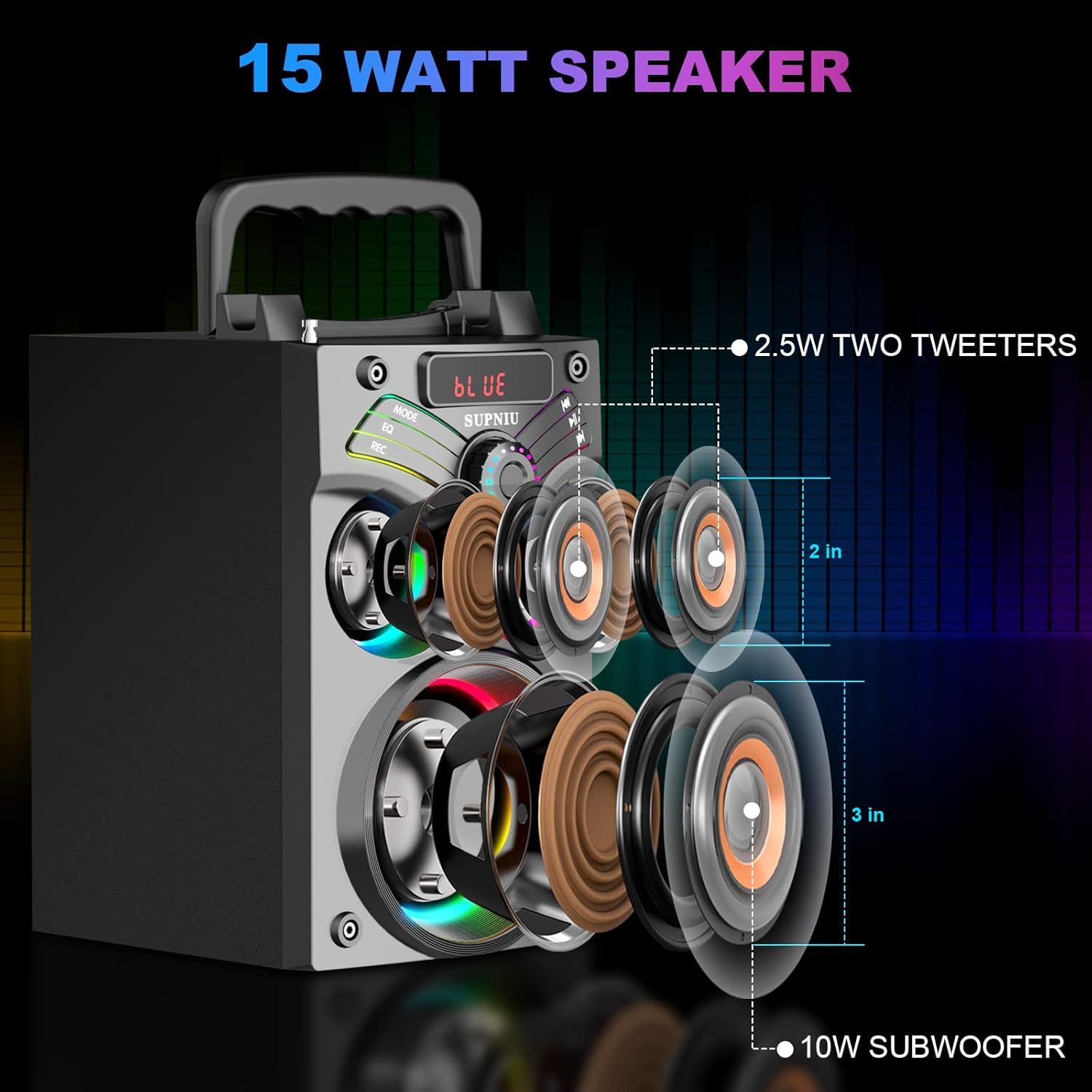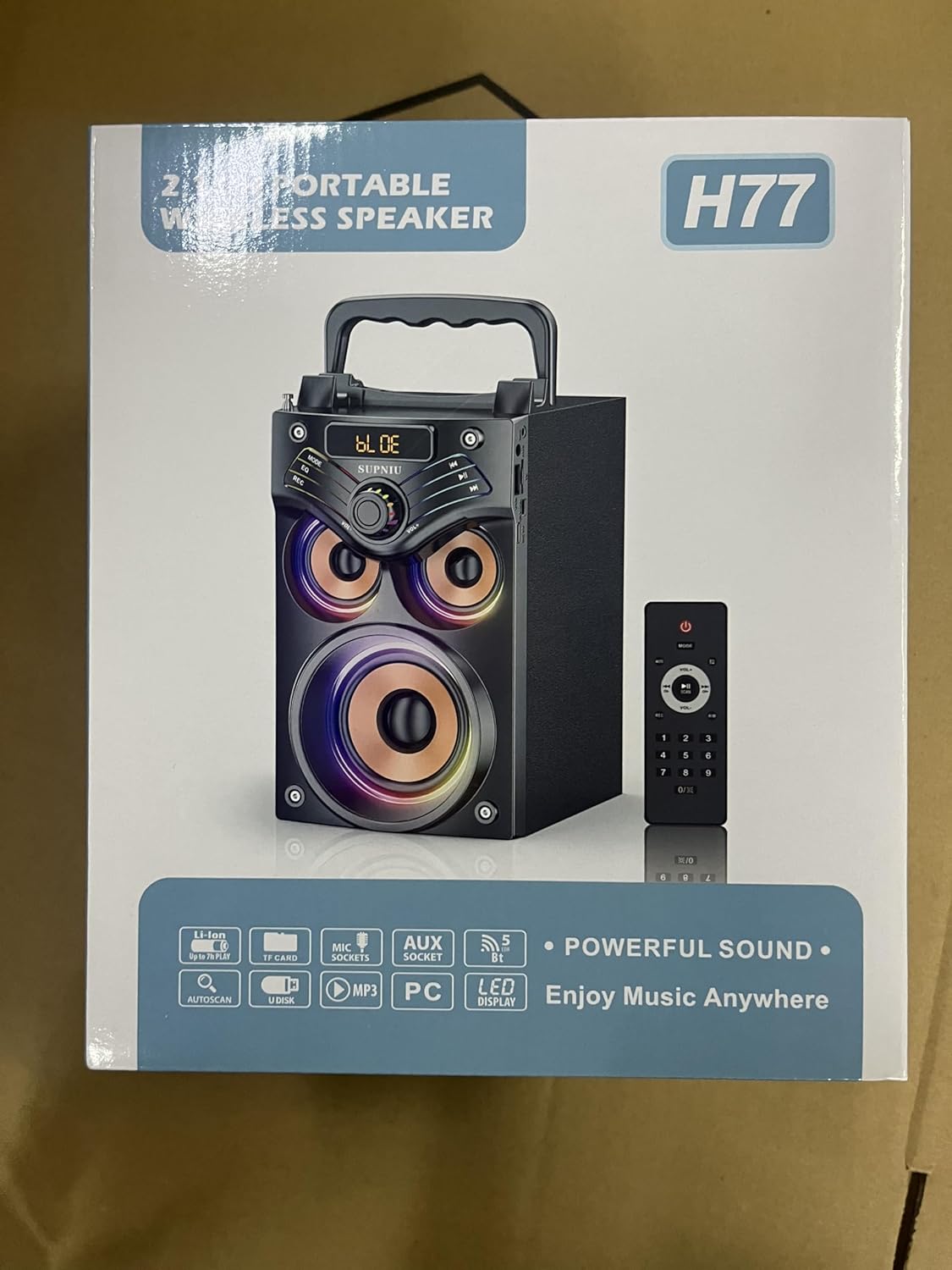 [Bluetooth Speaker with radio & Party Speakers]The Bluetooth speaker with FM Radio function, it can automatically search for nearby valid radio stations and save them with one click.It supports microphone function, you need to be equipped with a suitable microphone (no include), allows your family and friends to fully enjoy the passionate singing that brings happiness and joy to their lives.The SUPNIU H77 small party speaker is very suitable for listening to music, watching movies, meetings, etc