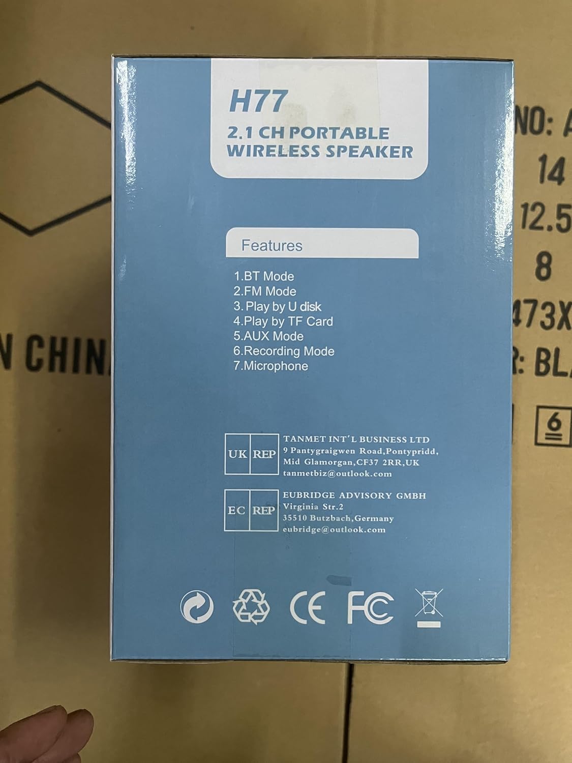 [Multifunctional Wireless Bluetooth Speakers & EQ Mode]The H77 portable Bluetooth speaker uses Bluetooth 5.0 technology.It can be freely and easily connected to smartphones, PC, TV or other bluetooth devices, with a barrier-free transmission range of up to 100 feet.You can also connect other non-Bluetooth devices such as MP3, MP4, computer, etc. via an 3.5mm audio cable.Take your sound quality into your own hands with the built-in equalizer (indoor and outdoor mode).