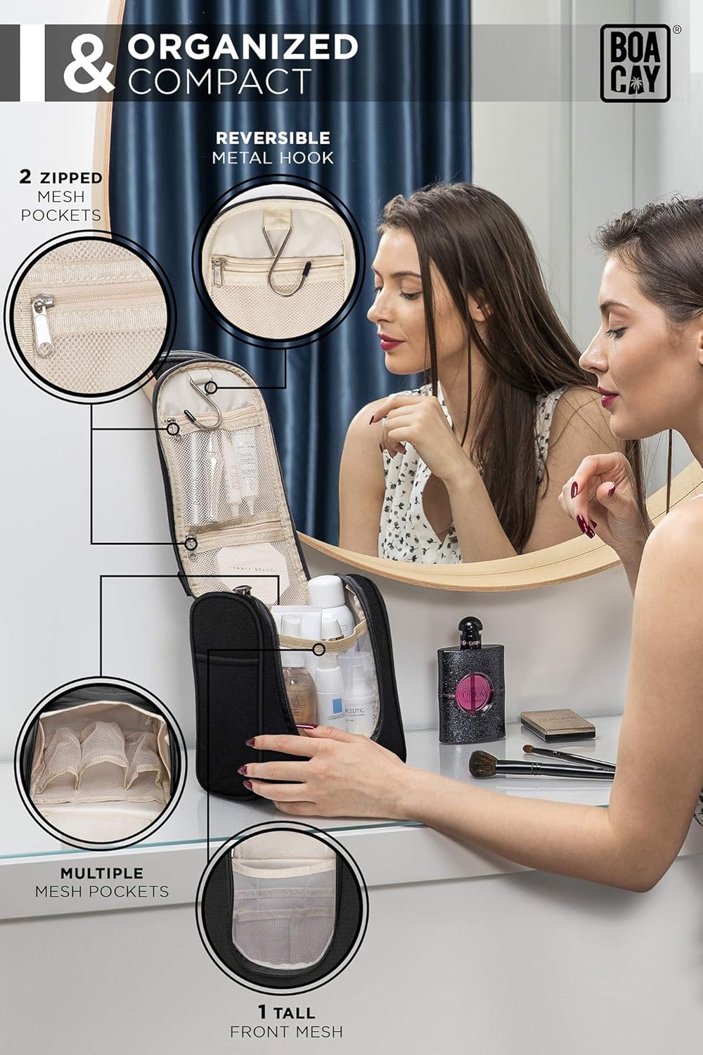 Boacay portable travel organizer can also be used as a hygiene & dopp kit, or bathroom bag. It is suitable for home, cruise, gym, camping, or travel use, and it will take away all your worries.