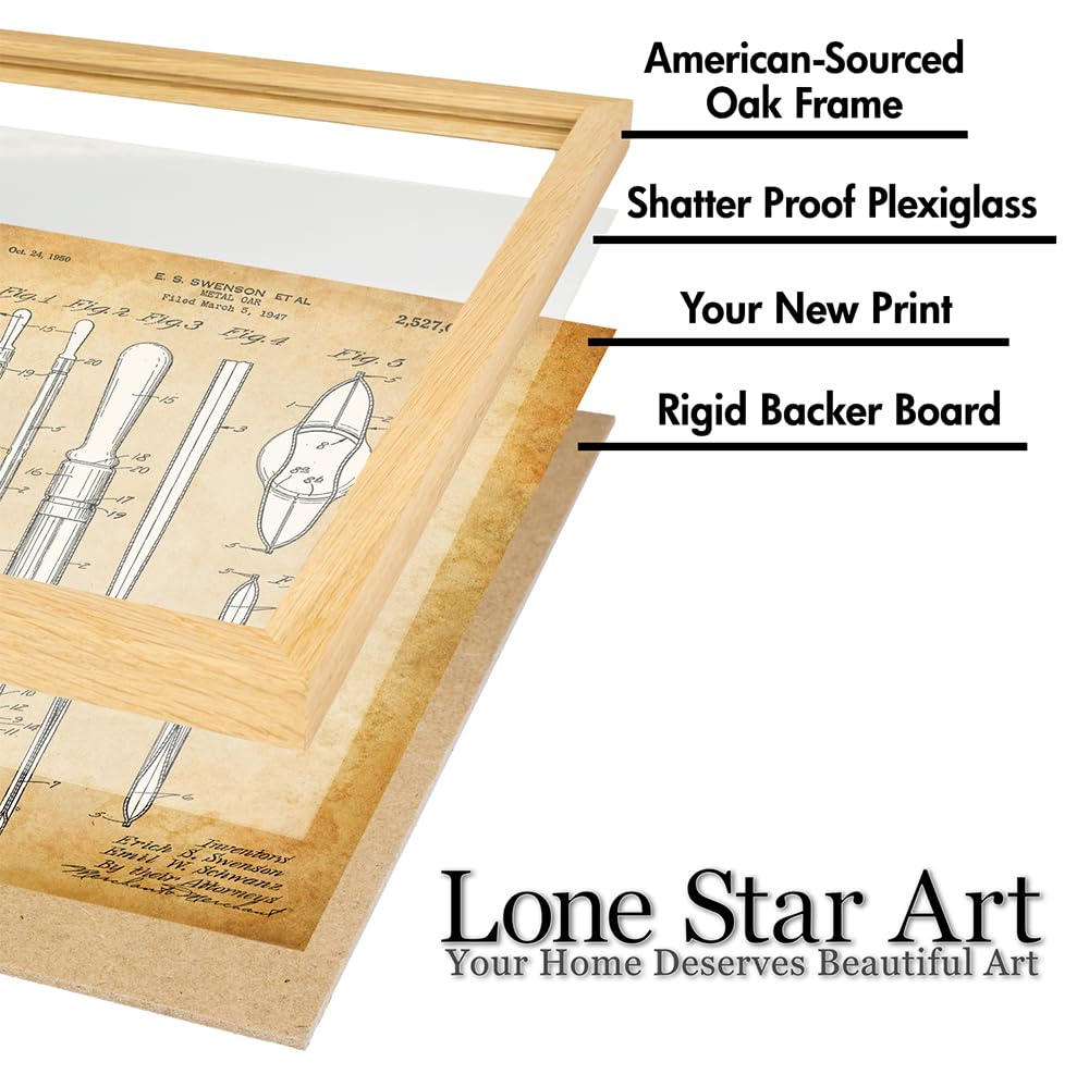 Infuse your décor with classic charm using our collection of vintage-inspired patent prints, ideal for history, science, and innovation enthusiasts. Crafted from natural solid oak wood sourced from U.S. forests, our premium frames boast high-quality plexiglass and MDF backing, exuding elegance and durability with their minimalist wood finish. Explore our innovative patent print gifts, great for any occasion, from birthdays and holidays to weddings and graduations. These prints, ideal for friends, family, coworkers, or anyone who appreciates ingenuity, make memorable additions to any room, from living rooms to offices to man-caves. Proudly made in Texas, each design is meticulously crafted and packaged at our studio in Tomball by a dedicated team committed to producing quality products.