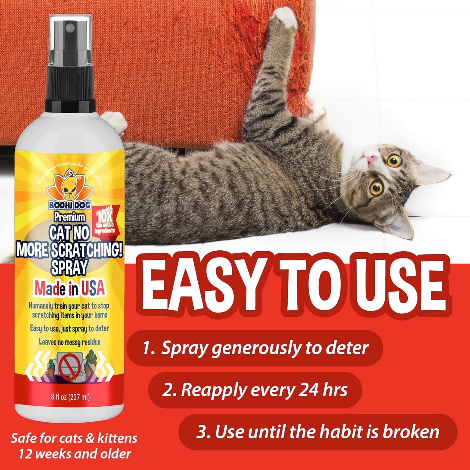 Odor-Based Deterrence: Our cat spray deterrent for scratching uses natural scents and odors that are offensive to cats but not to humans. The long-lasting smells tell your cat what not to scratch.