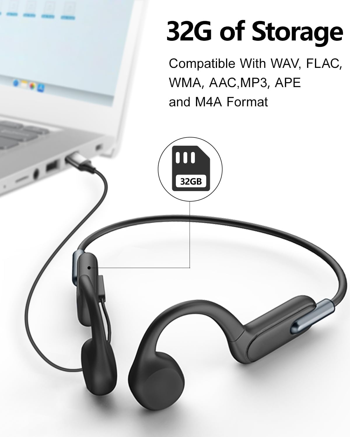 Bone Conduction Headphones Swimming, Wireless Bluetooth 5.3 IP68 Waterproof Sports Headphones, Built-in 32G Memory with Microphone, Open Ear Headphones for Swimming, Cycling, Running