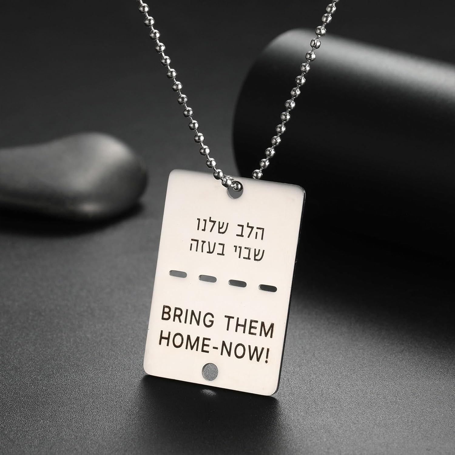 Bring Them Home Now Necklace Israel Necklace Support Israel Dog Tag Necklace I Stand with Israel Women Men Unisex Chain Israel Military Necklace Stand with People of Israel Support Israel