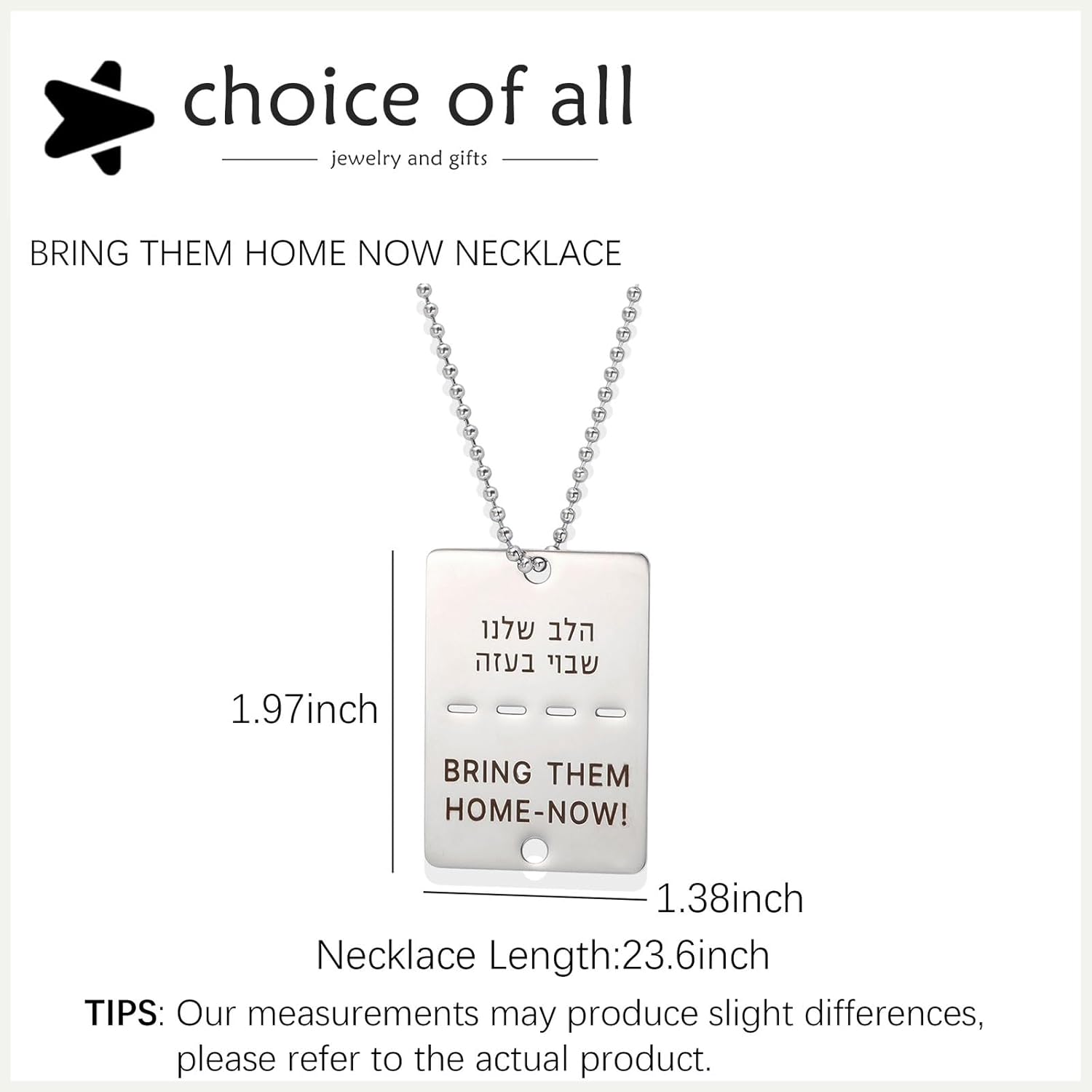 Bring Them Home Now Necklace Israel Necklace Support Israel Dog Tag Necklace I Stand with Israel Women Men Unisex Chain Israel Military Necklace Stand with People of Israel Support Israel