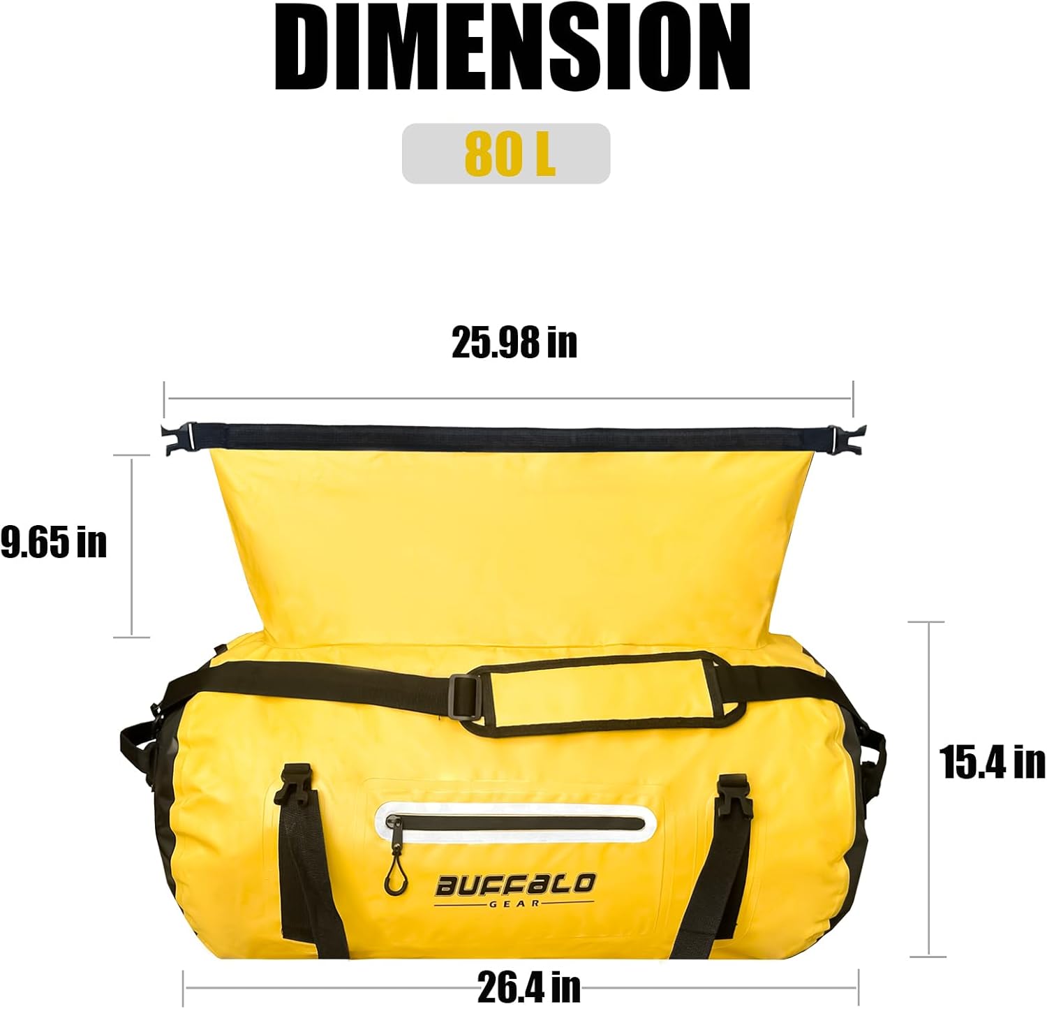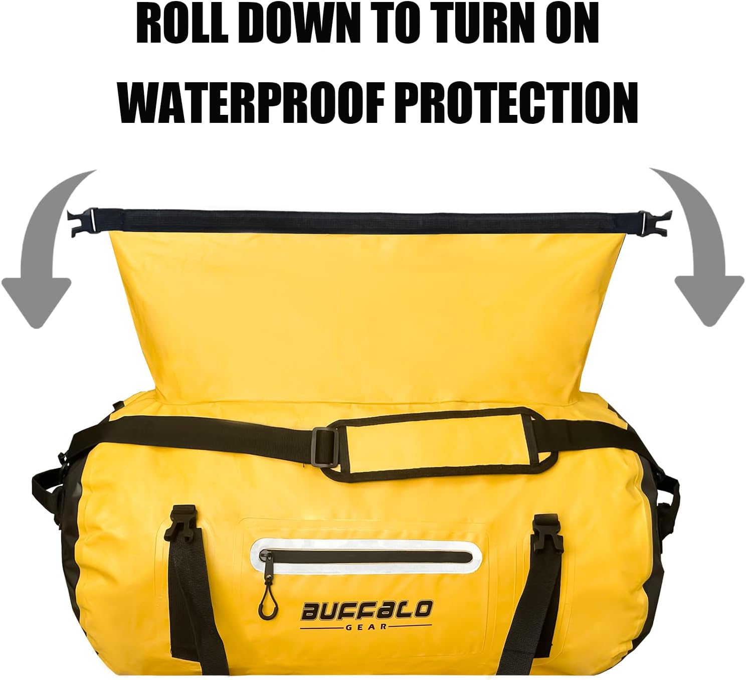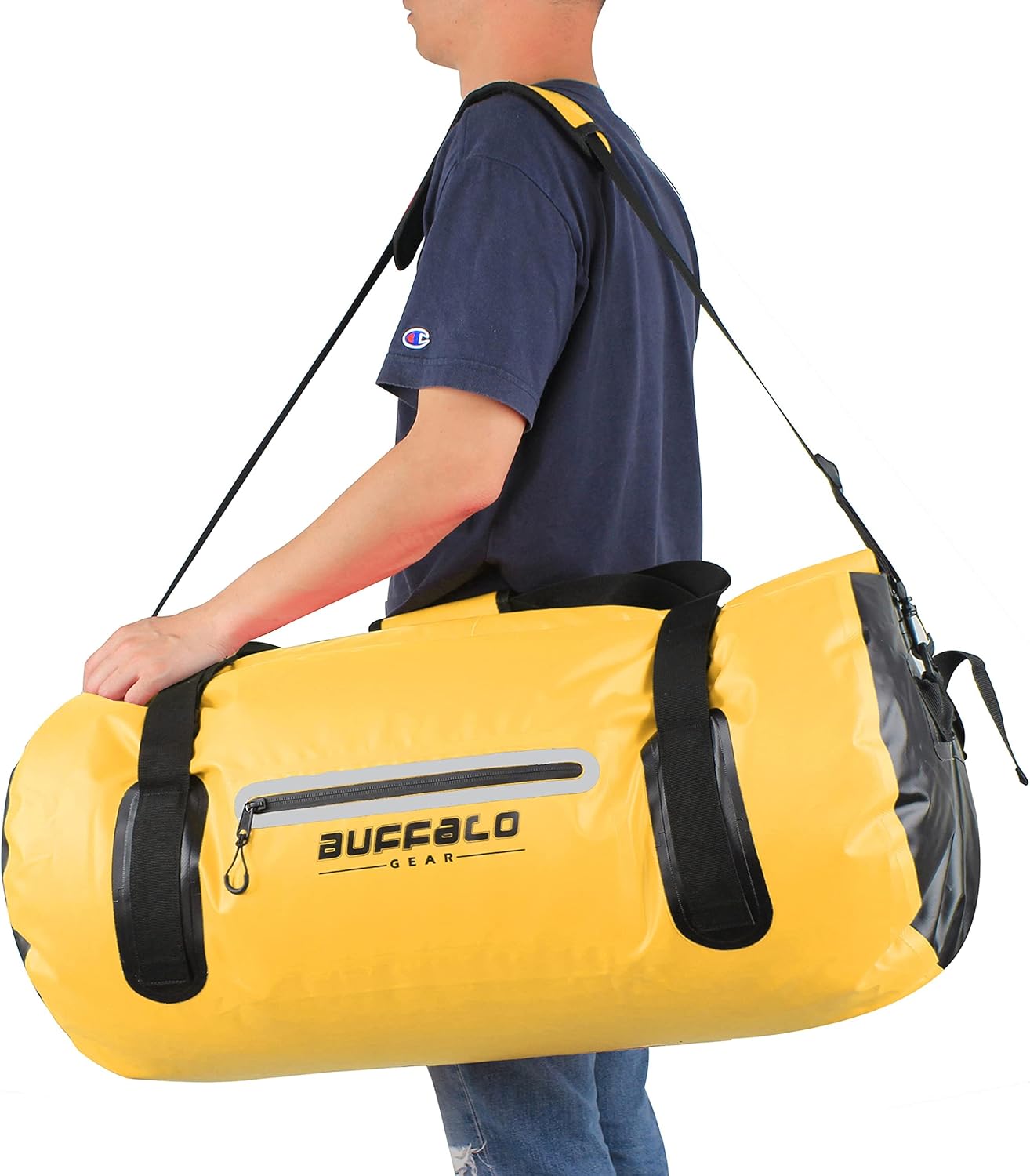 Buffalo Gear Drybag 60L Waterproof Duffel Bag Heavy Duty Dry Duffle Bag for Travel, Kayaking, Rafting, Boating, Fishing,Camping, Yellow