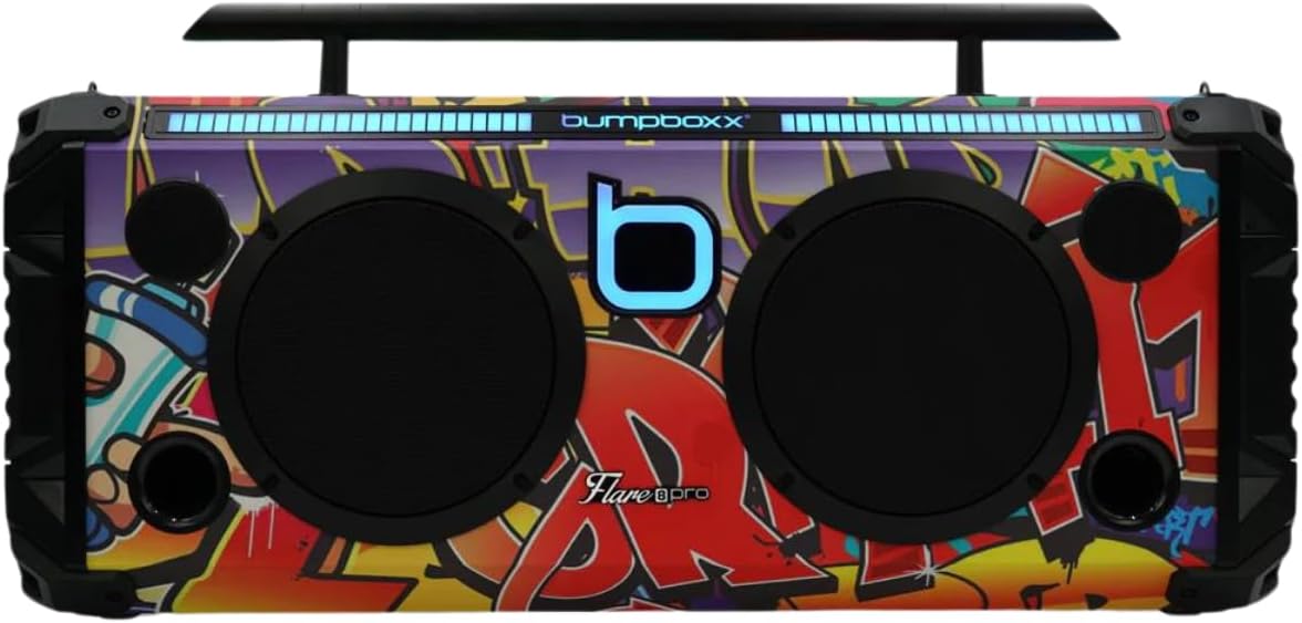 Bumpboxx Bluetooth Portable Speaker Boombox Flare8 Pro NYC Graffiti | Retro Boombox with Bluetooth Speaker | Rechargeable Lithium Battery | Includes 2 Wireless Microphone & Remote Control