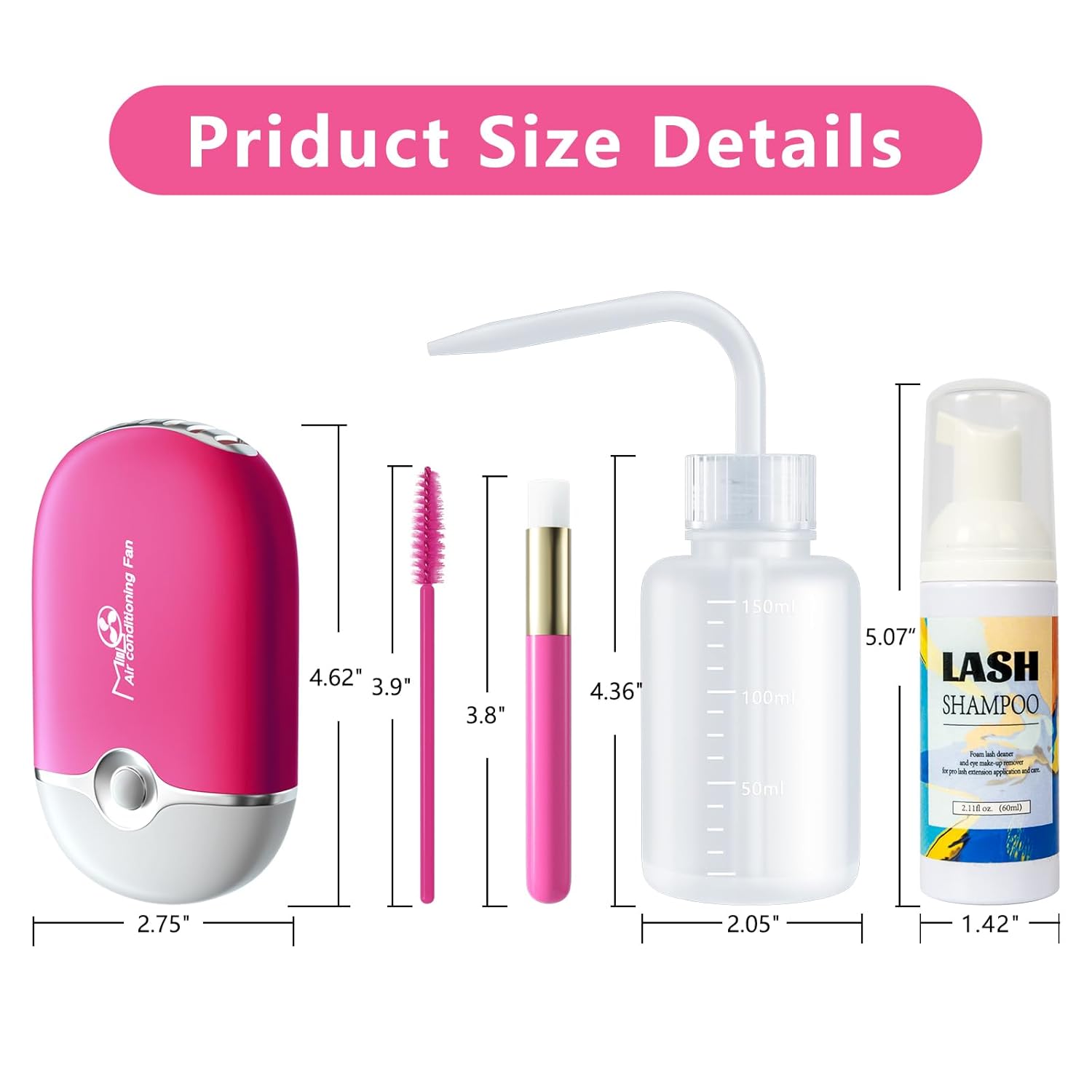 ♦️【Lash Shampoo for Eyelash Extention】Buqikma eyelash extention remover kit includes 1pc 2.11floz(60ml) large capacity eyelash extension shampoo,1pcs rose red portable USB lash fan dryer,1 pc soft fan brush,50pcs mascara brush,1pc 150ml washing bottle.A variety of accessories to meet all your daily needs of keeping your eyelashes perfectly clean.Our lash shampoo kit is suitable for both natural and false eyelashes and help you clean your eyelashes quickly and effectively.
