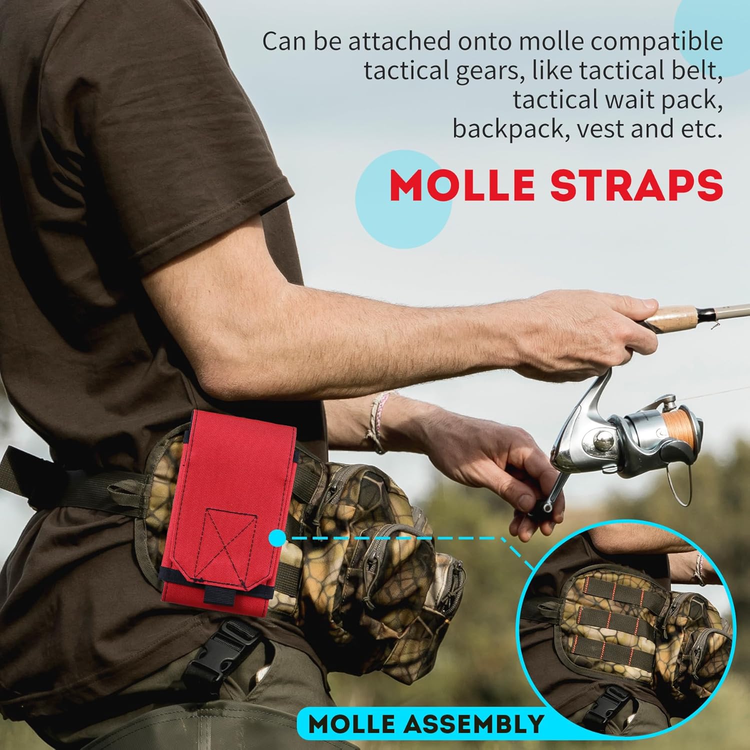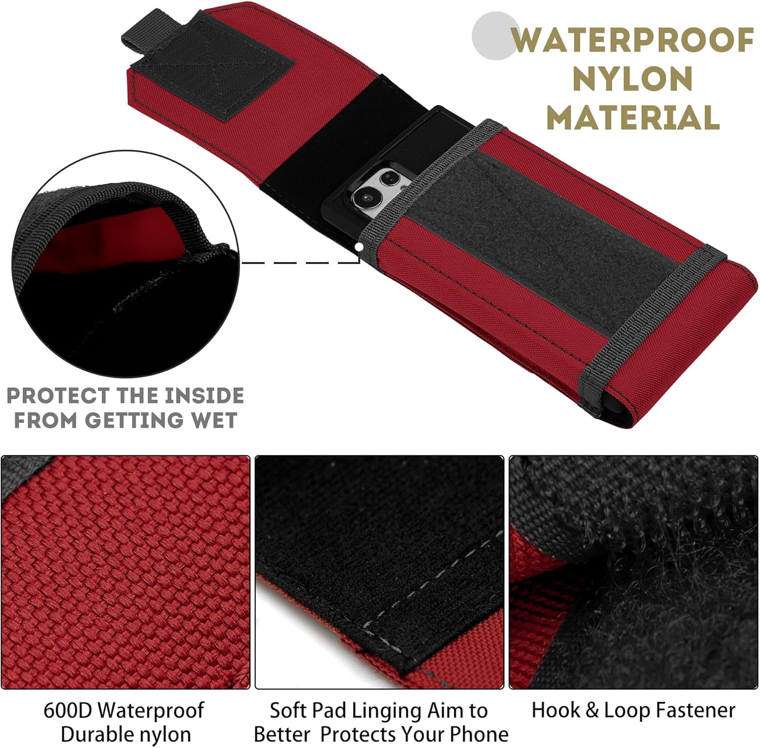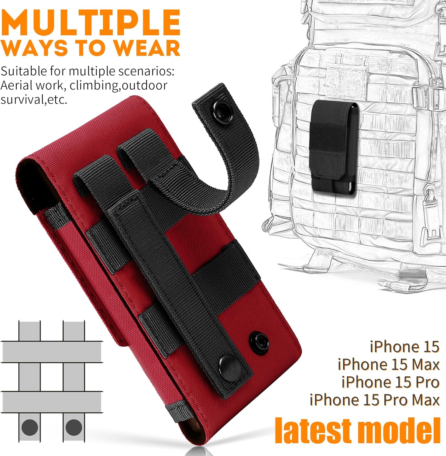 bvya Large Tactical Molle Phone Holster Pouch Belt Carrying Case Cover for 4.7″-6.9″ Smartphone for iPhone 15 Pro Max/14 Pro Max/13 Pro Max, Size Large, Adjustable Height to 7.3″ (Red)