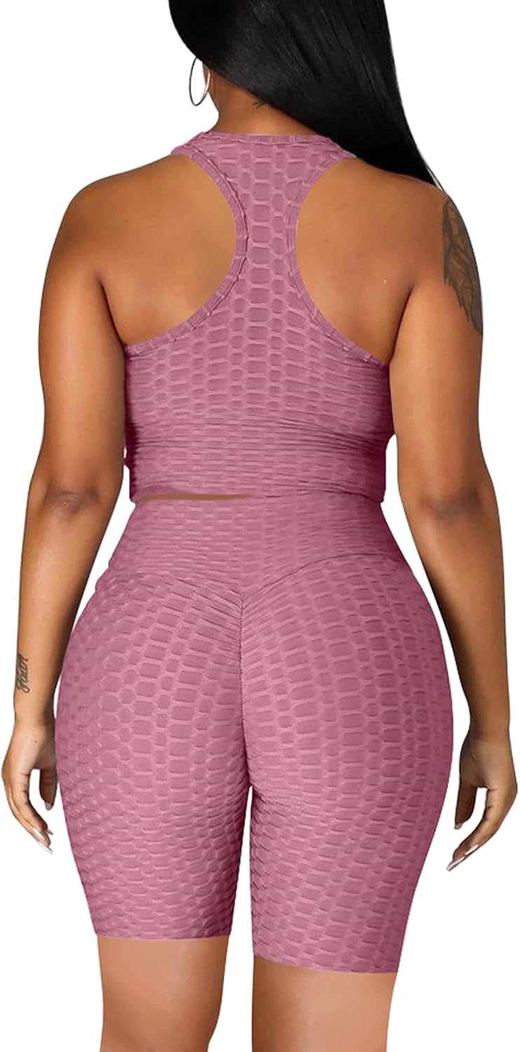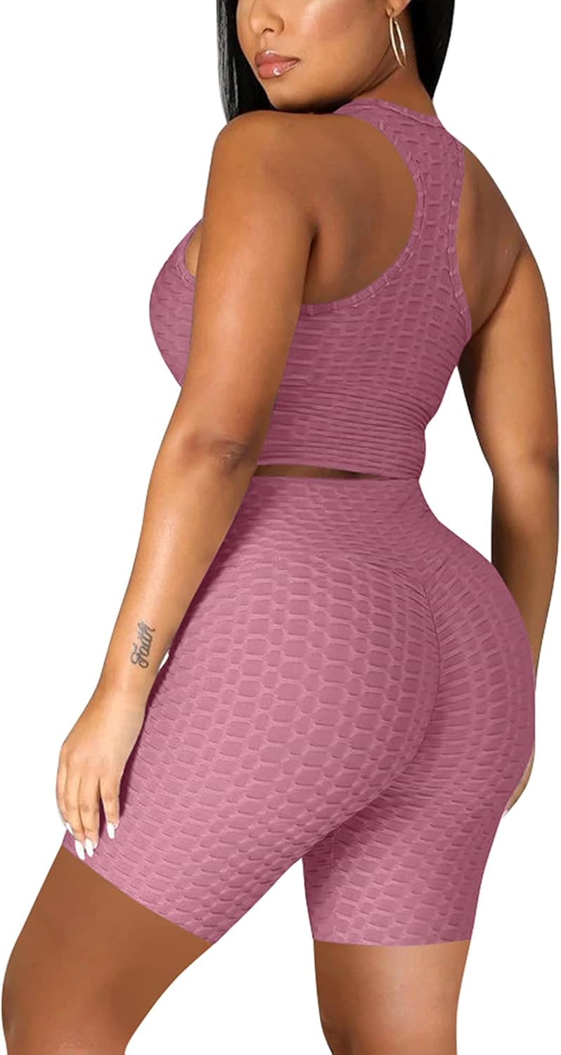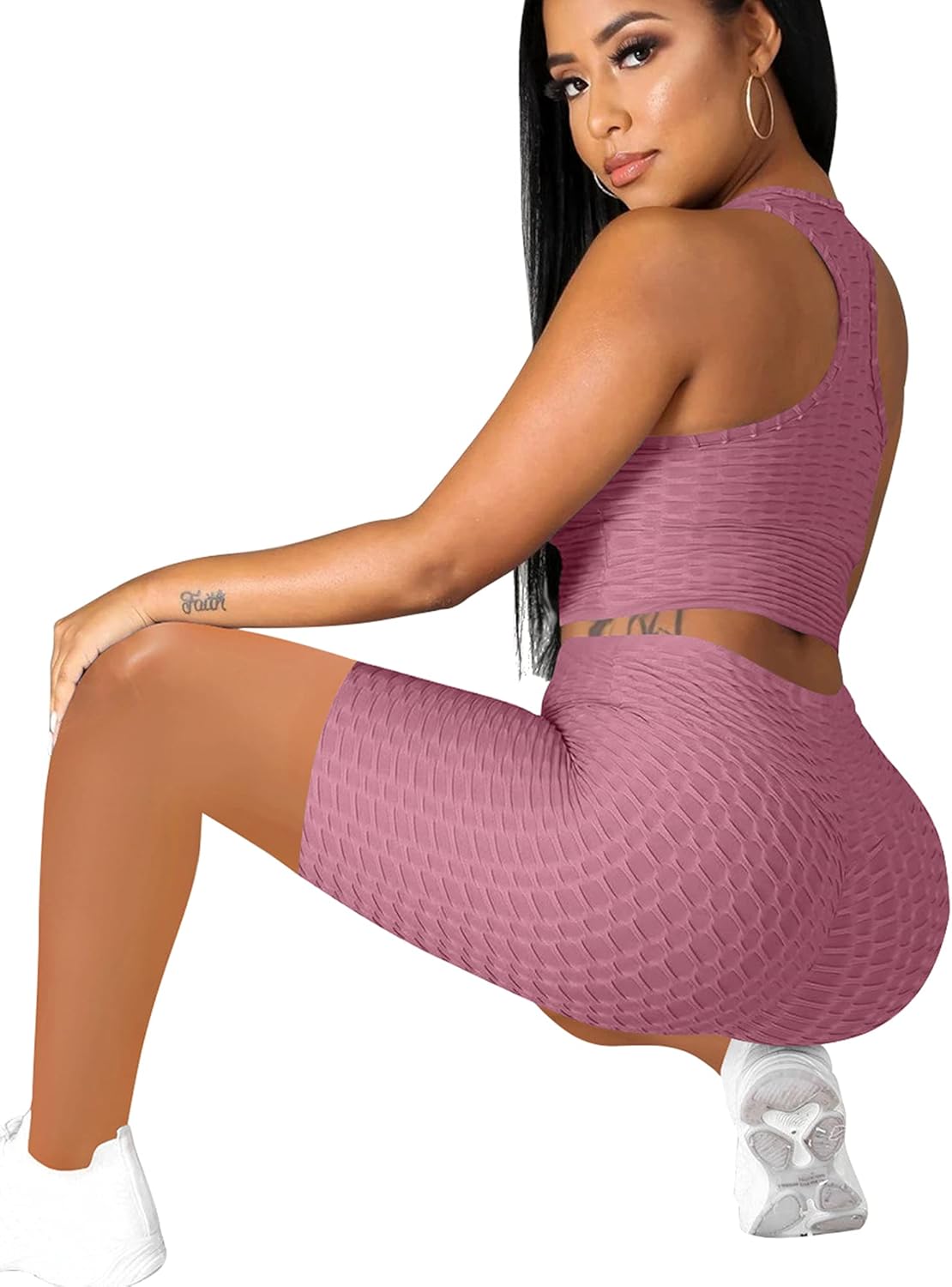 cailami Workout Sets for Women 2 Piece Outfits Sexy Gym Crop Tank High Waist Biker Shorts Yoga Sets