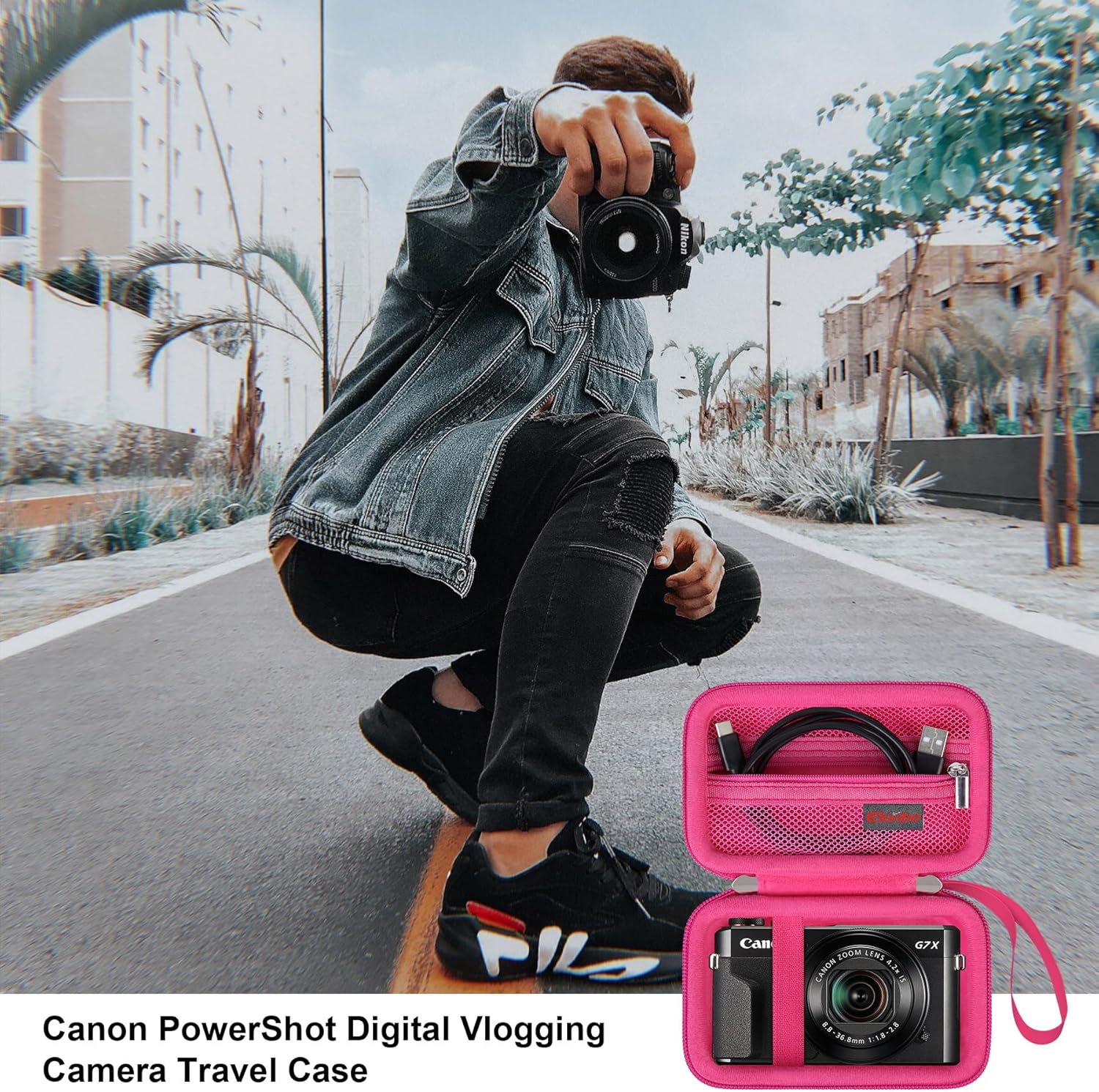 This canon camera portable carrying case is specially designed for Canon PowerShot G7 X / G7 X Mark II / G7 X Mark III / G9 X mark III 4K digital camera, Internal space 1:1 build, perfectly fit Canon PowerShot G7 X / Canon PowerShot G7 X mark II / Canon PowerShot G7 X mark III / canon powershot vlogging camera G9 X mark III. extra mesh pocket for battery, charger, mini USB cable, SD card, cleaning cloth.This 4k digital camera storage case is made of high-density fabric hard EVA material and velvet lining, shockproof water-resistant scratch resistant dust-free anti-static.the digital camera travel case is very suitable to provide travel protection for your canon powershot G7 X / G7 X mark II / G7 X mark III / G9 X mark III digital vlogging camera.This digital travel camera holder comes with extra interior zipper mesh pocket, which can fit your SD card, charger, mini USB cable, rechargeable battery, cleaning cloth. the video camera cover has a double zipper design, can be opened and closed freely, provides easy access to your canon powershot G7 X / G7 X Mark II / G7 X mark III / G9 X Mark III digital camera.The stylish canon digital camera carrying storage holder is featured with a elastic bands. can fix powershot G7 X / G7 X mark II / G7 X mark III 6K video streaming camera with case tightly and avoid shake at will. The ultra-portable digital camera case lightweight and compact, easy to put in backpacks, shoulder bag and luggage, ideal for daily use and travel.This well-designed canon 4K digital camera case has a very comfortable portable detachable wristband for convenient portability on the go, suitable for traveling, hiking, camping. or storing your Canon PowerShot G7 X / G7 X Mark II / G7 X Mark III / G9 X mark III digital 4K vlogging camera when not in use.
