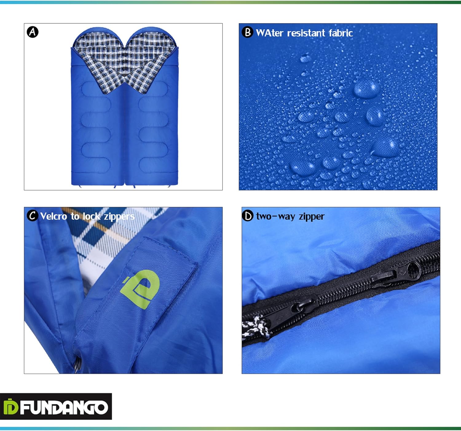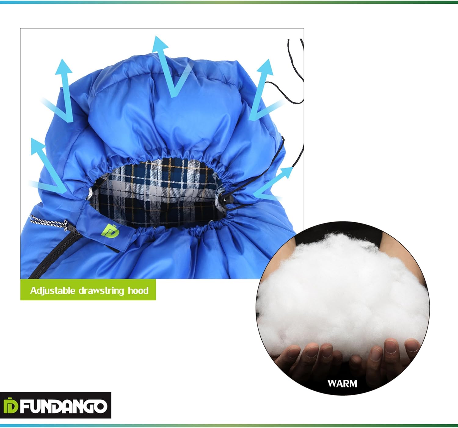 ✅IDEAL FOR ANY TEMPERATURES: You can use this hooded sleeping during all 4 seasons. The heat retention technology will keep your body warm during a cold night, while the double sided zippers allow you to open the sleeping bag and get some air.