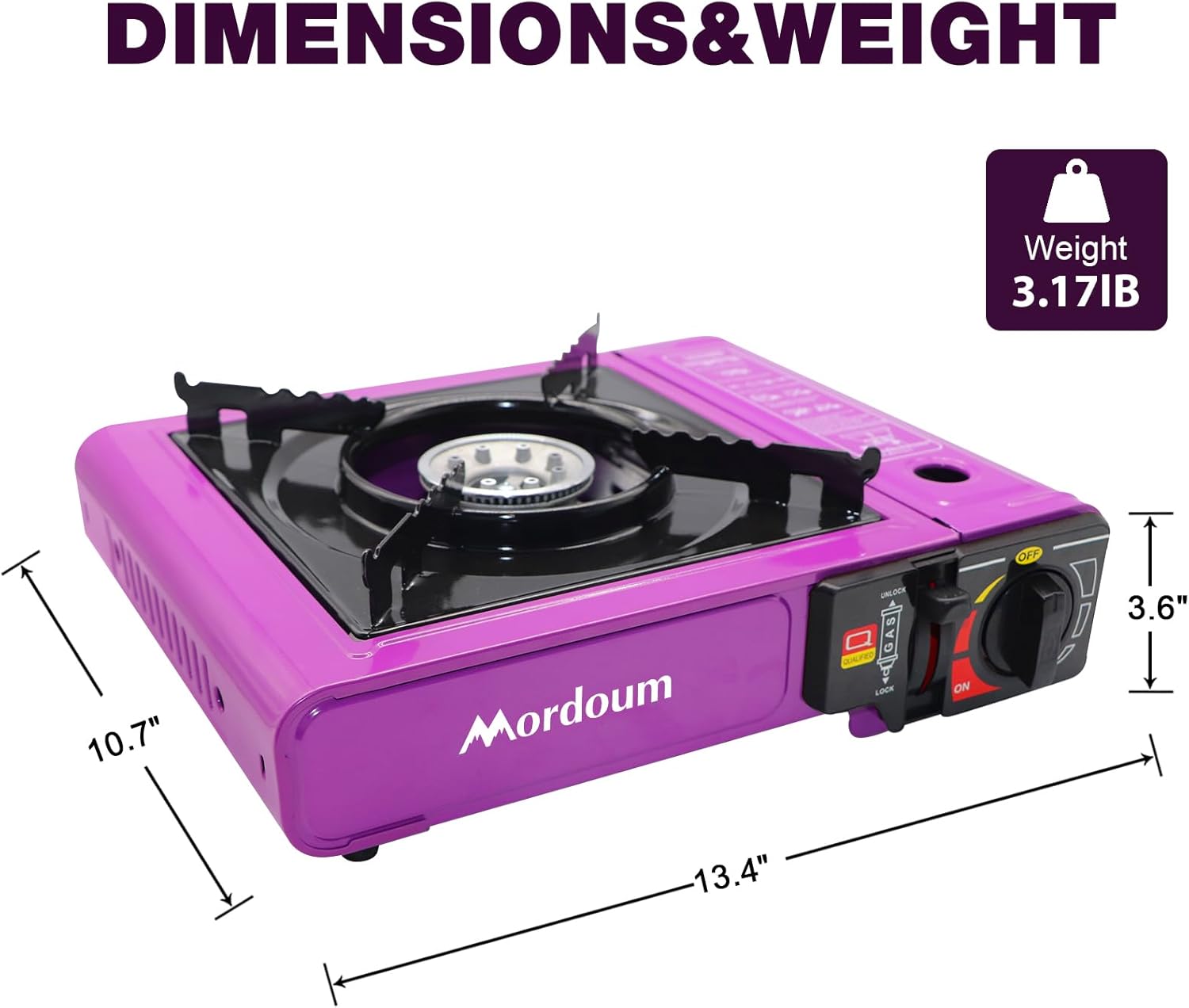 Camping Stove Portable Portable Butane Stove Camp Kitchen Equipment Single Burner Outdoor Cooking Grill for Camping, Picnics, Hiking, Fishing, BBQ (Purple)