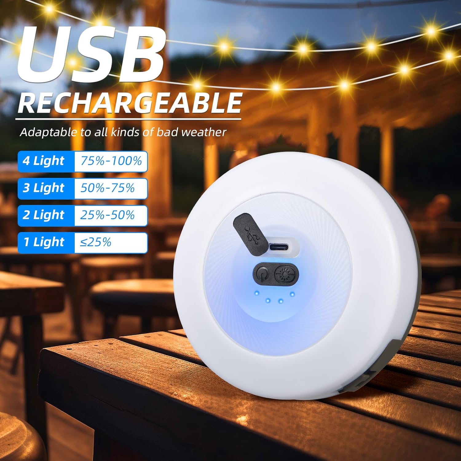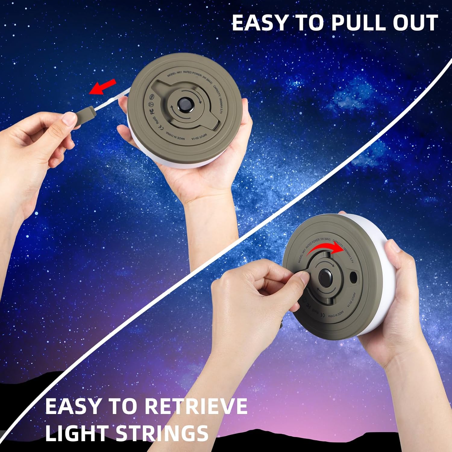 Portable Camping Light: This camping light is only 8.1oz and compact (4.72 * 4.72 inches) adventure light. It’s designed for on-the-go ease. The Camping String Light Offer three modes: 100 lumen (2700K) and 200 lumen (4000K) of white light, flashing red light, it caters to all your outdoor illumination needs. Plus, with its additional feature of a 23ft string light, it creates the perfect ambient setting, indoors or out. Its user-friendly design with easy storage makes it an essential for both avid campers and casual outdoor enthusiasts