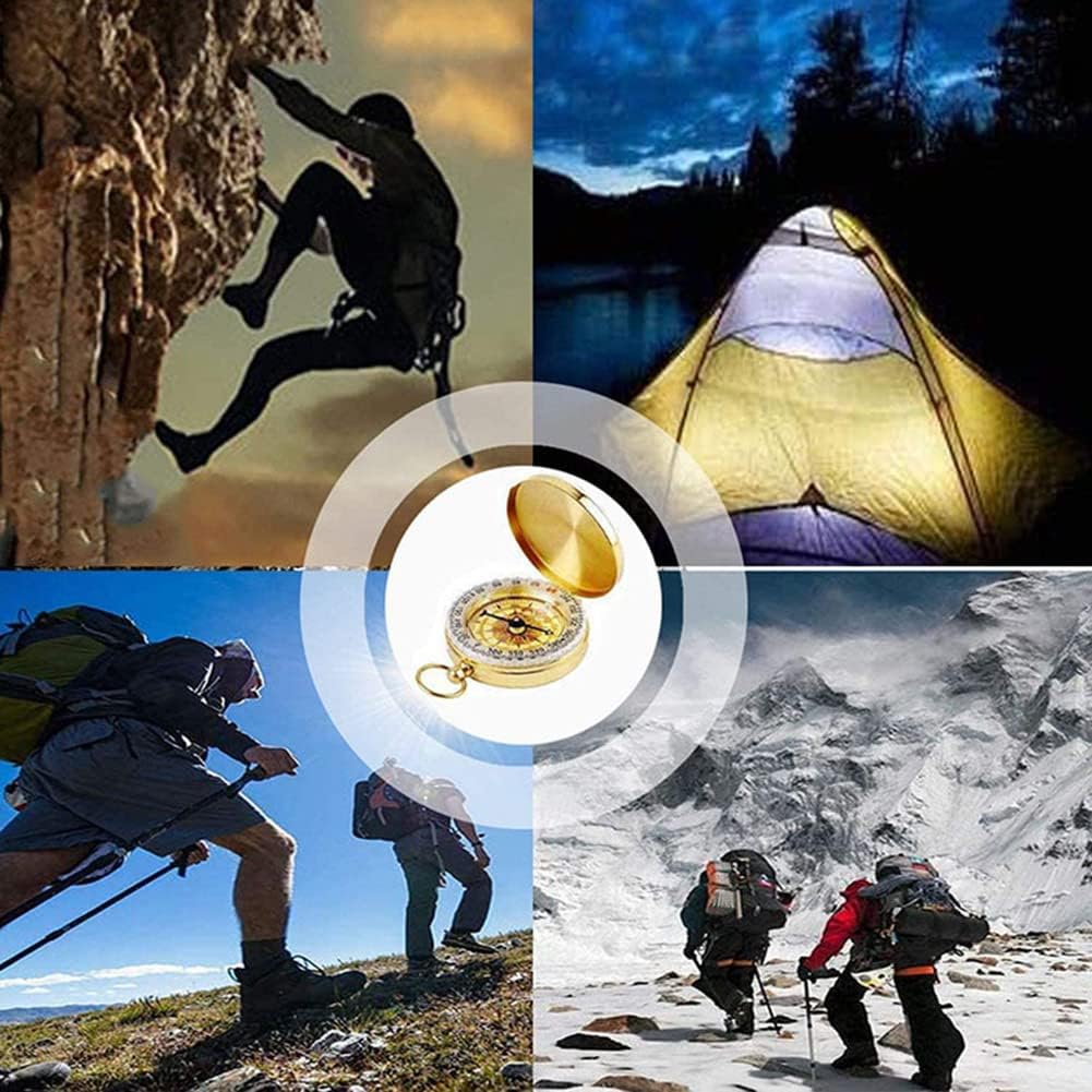 Camping Survival Compass for Hiking,Small Golden Pocket Compass for Kids,Glow in The Dark Waterproof Vintage Metal Military Gear Compass for Hunting Backpacking Outdoor Navigation Tool
