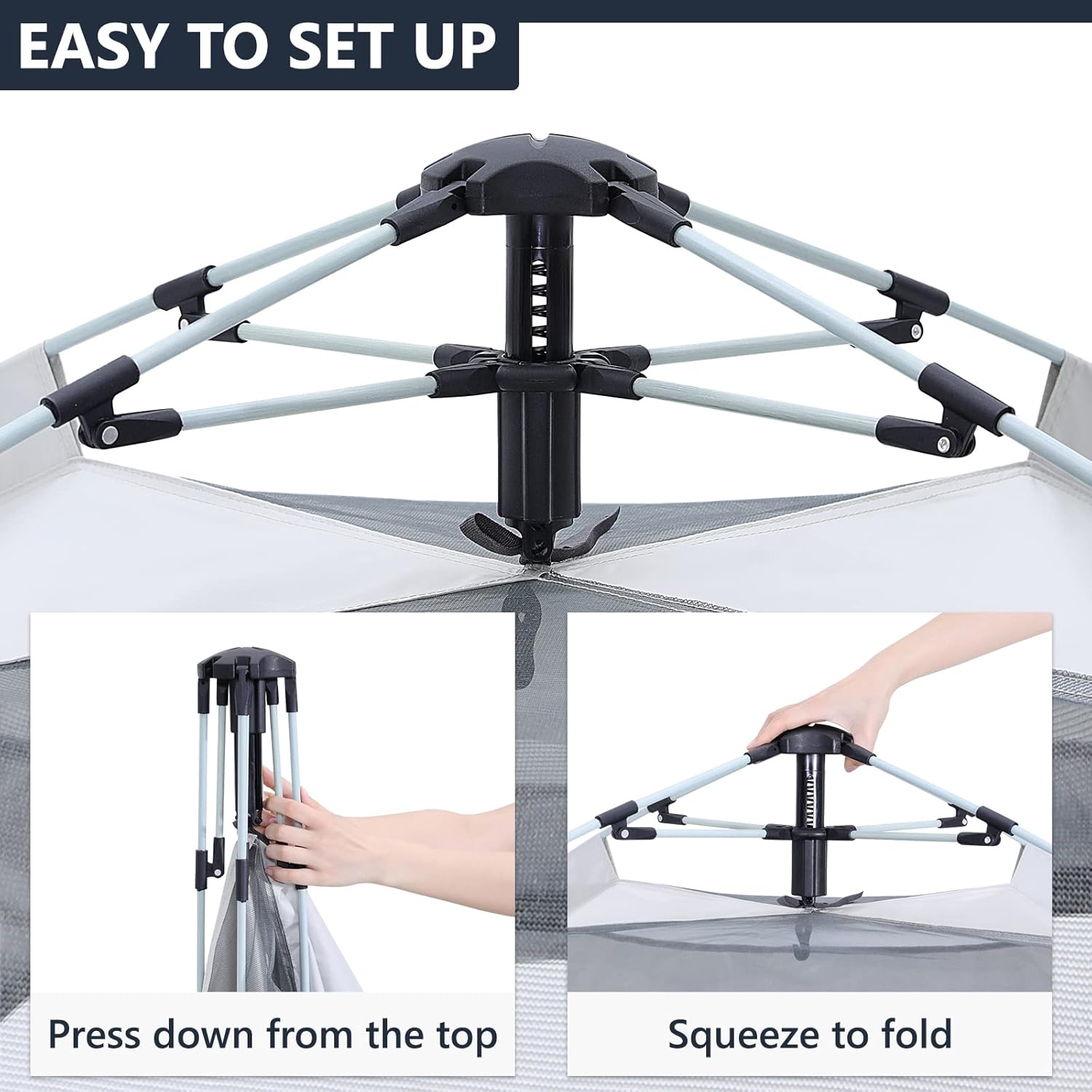 【Easy Set-Up】:Our tent comes with an Automatic Folding hydraulic System. Quick opening in 3 seconds, one-handed operation. “One press” to open and close, no assembly required, save time and effort, lightweight and stable, not easily damaged.