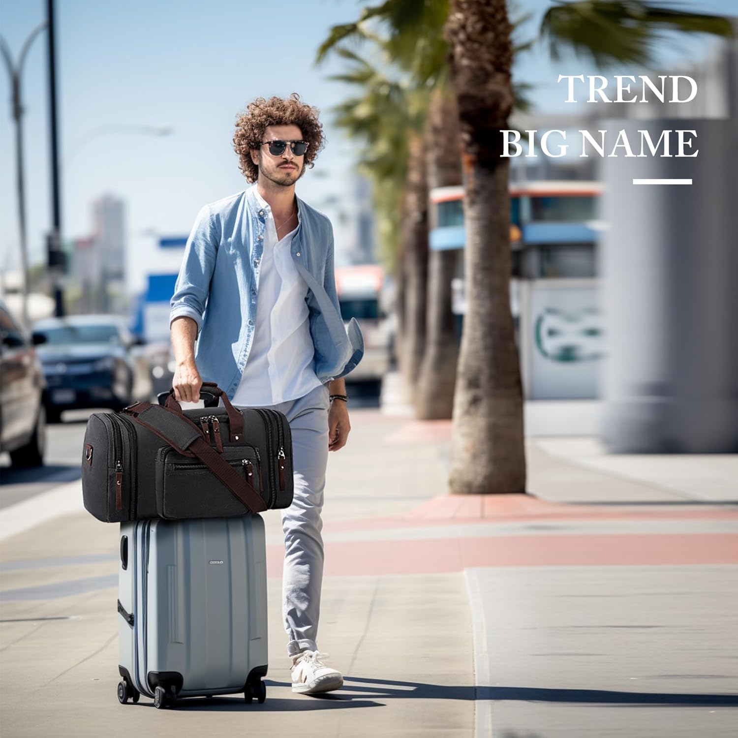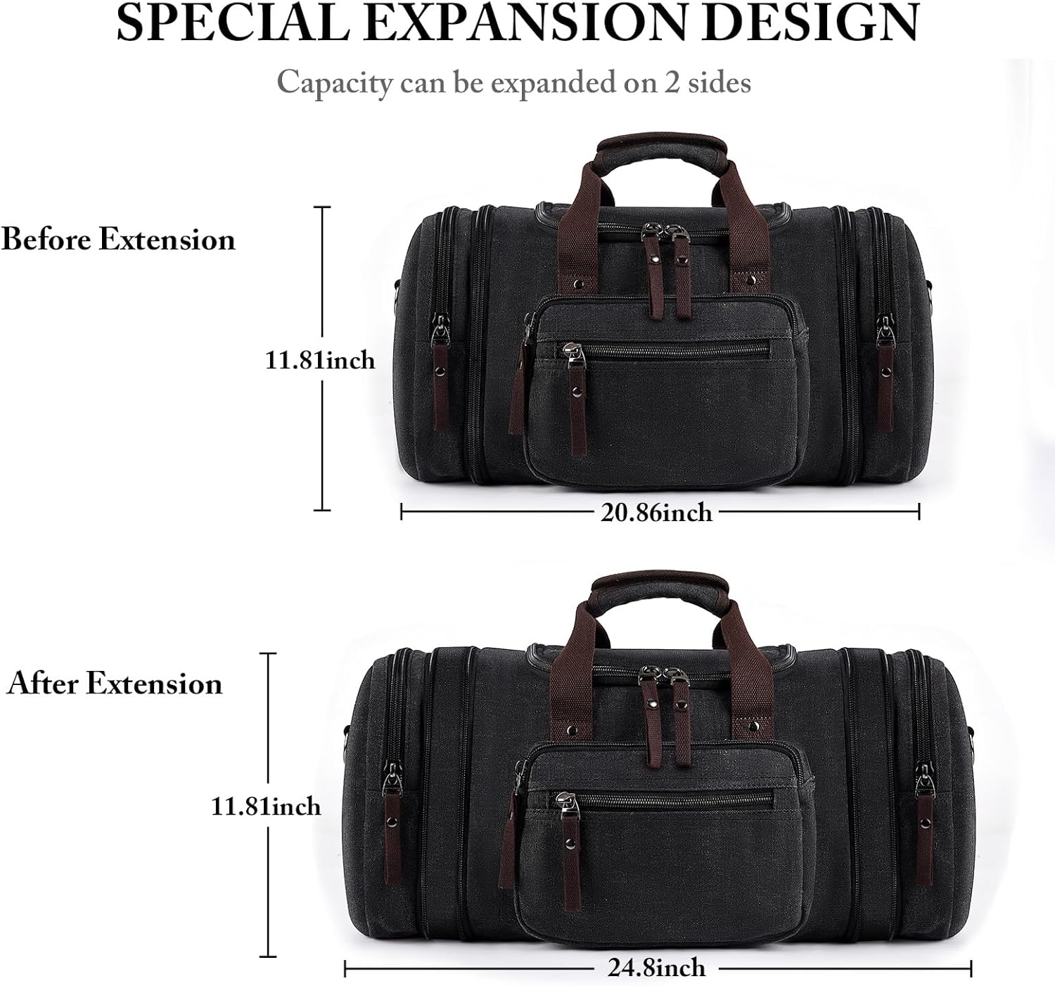 Canvas Expandable Duffle Bag for Men Traveling, Luggage Travel Bag Weekender Overnight Bag,Mens Gym Carry on Duffel Bags(Dark Gray)
