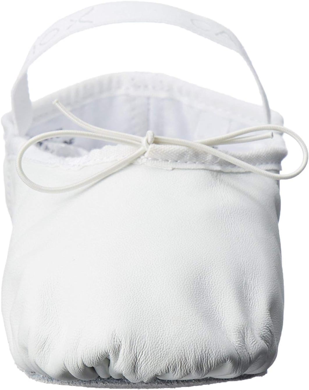 Step up to the barre in the Leather Daisy ballet shoe. Features a full sole and pre-attached elastics for a snug fit. Choose between playful daisy patterned lining on the ballet pink slipper or unisex non-print lining on the black or white slipper. Highly recommended for beginners with a wider foot.