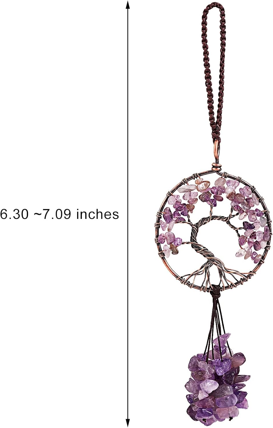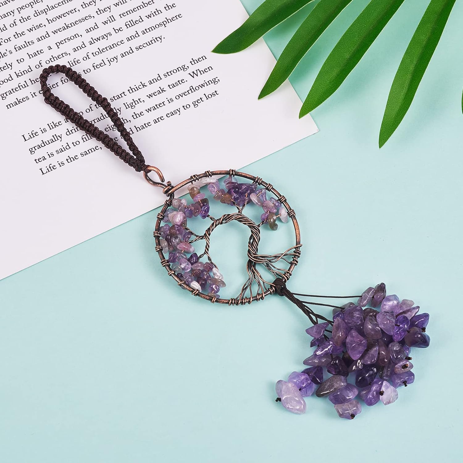 Car Accessories Natural Amethyst Tree of Life Winding Chip Tree of Life Charm Healing Crystal Stone Rearview Mirror Accessories Home Wall Hanging Meditation Decoration