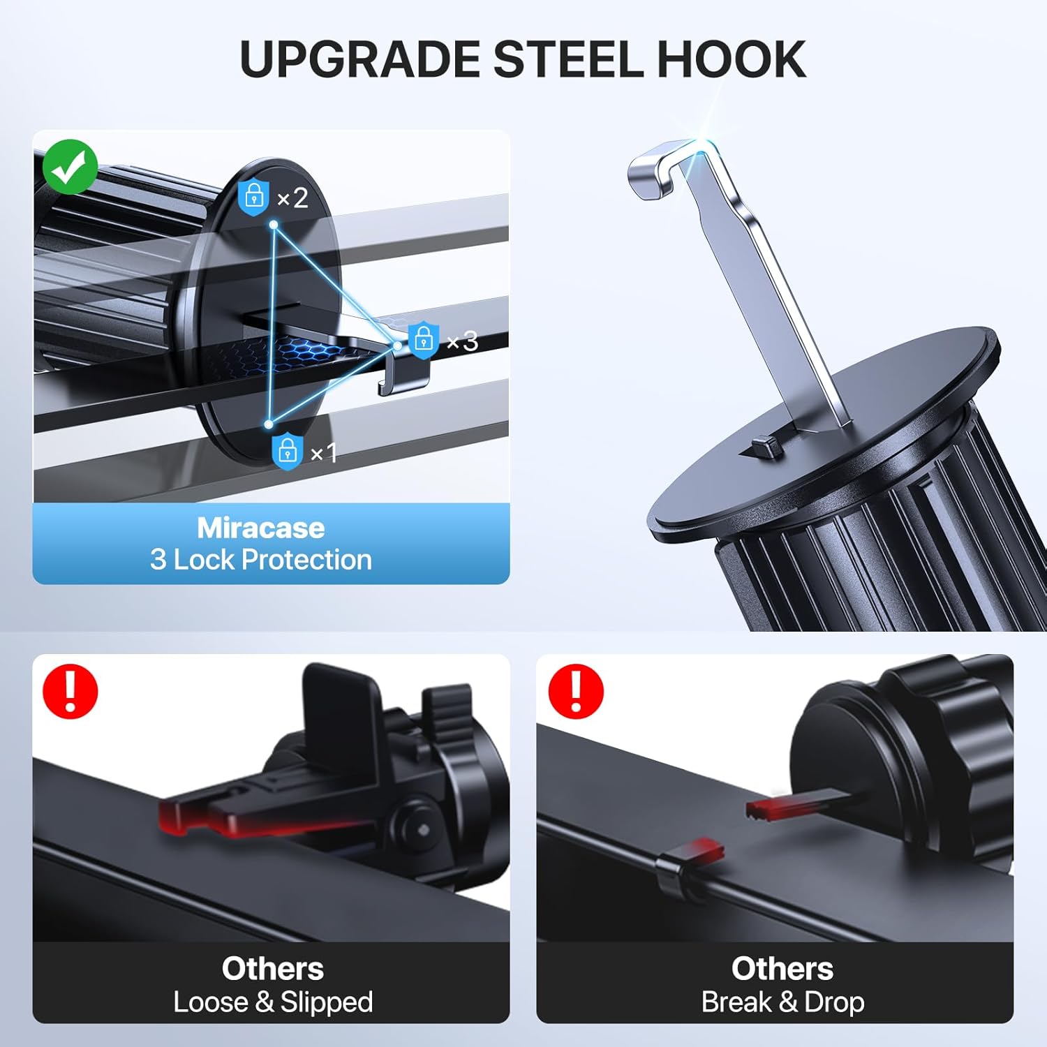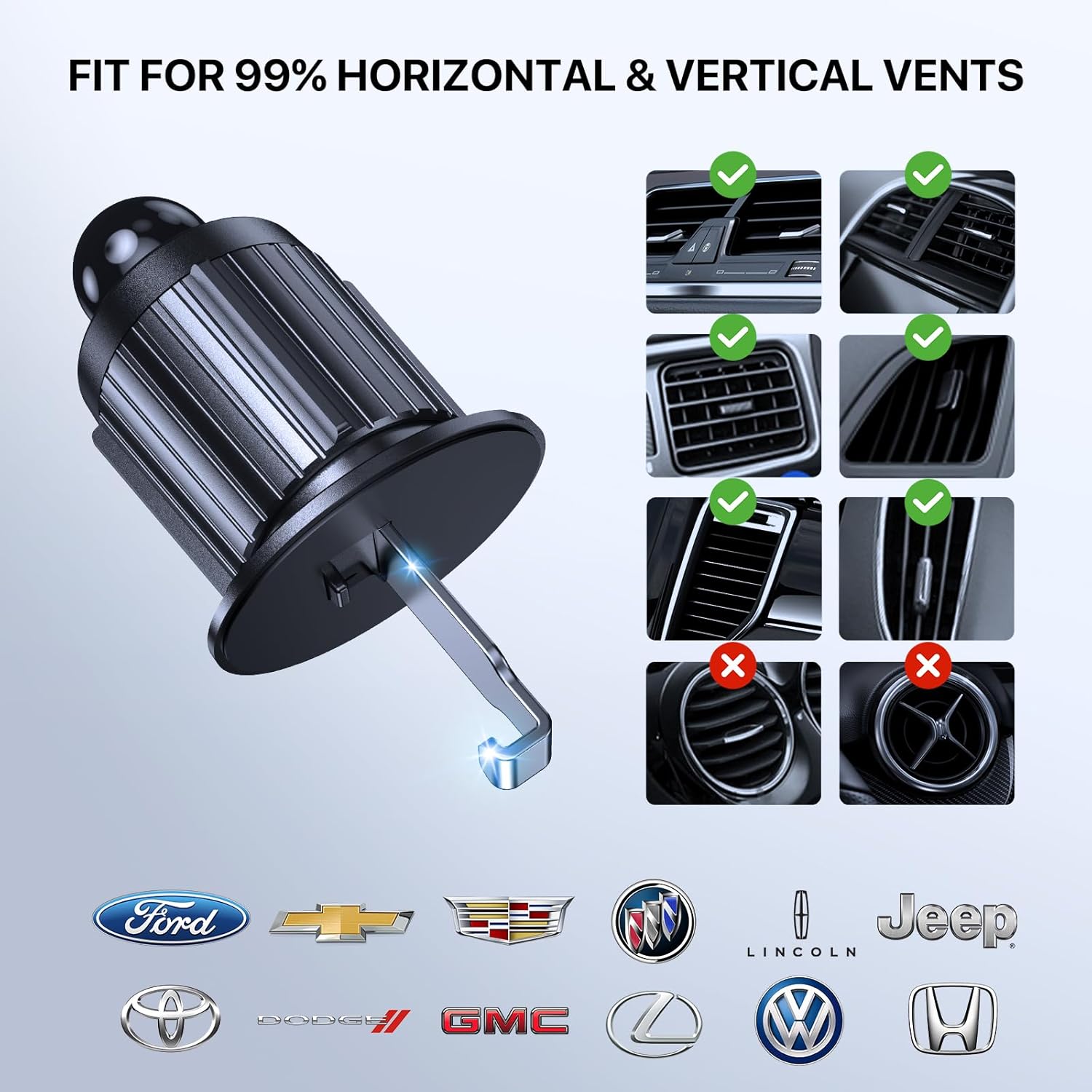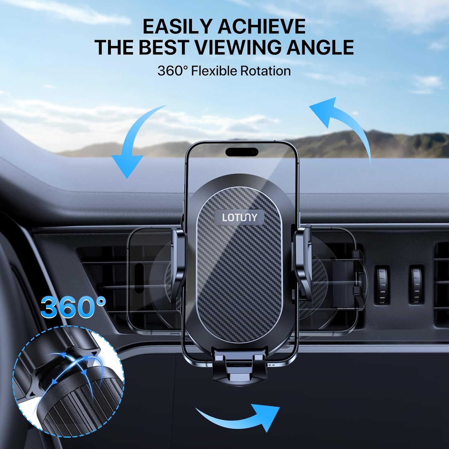 [Upgraded Vent Clip Design] LOTUNY car phone mount features an upgraded vent clip with a metal hook and stable 3-point supports, providing a stronger and tighter grip than other single-structure mounts. Keep your phone securely in place even on bumpy or sharp roads without any worries about shaking or falling.