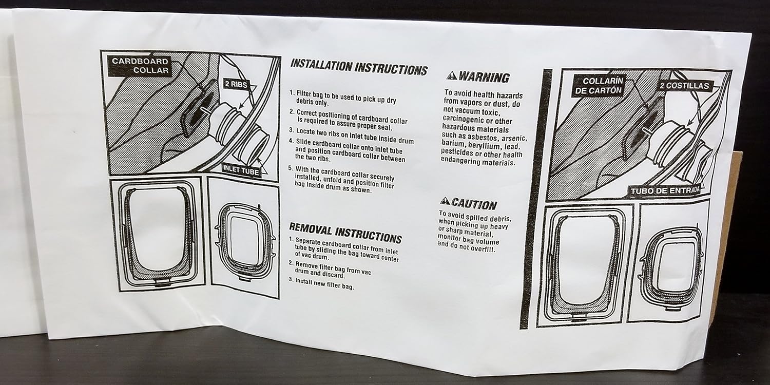 Casa Vacuums 6-Pack RIDGID compatible 23738 VF3501 Wet Dry Vac High-Efficiency Dust Bags, Wet Dry Vacuum Filter Bags, 2 pks of 3 Dust Collection Bags per Package