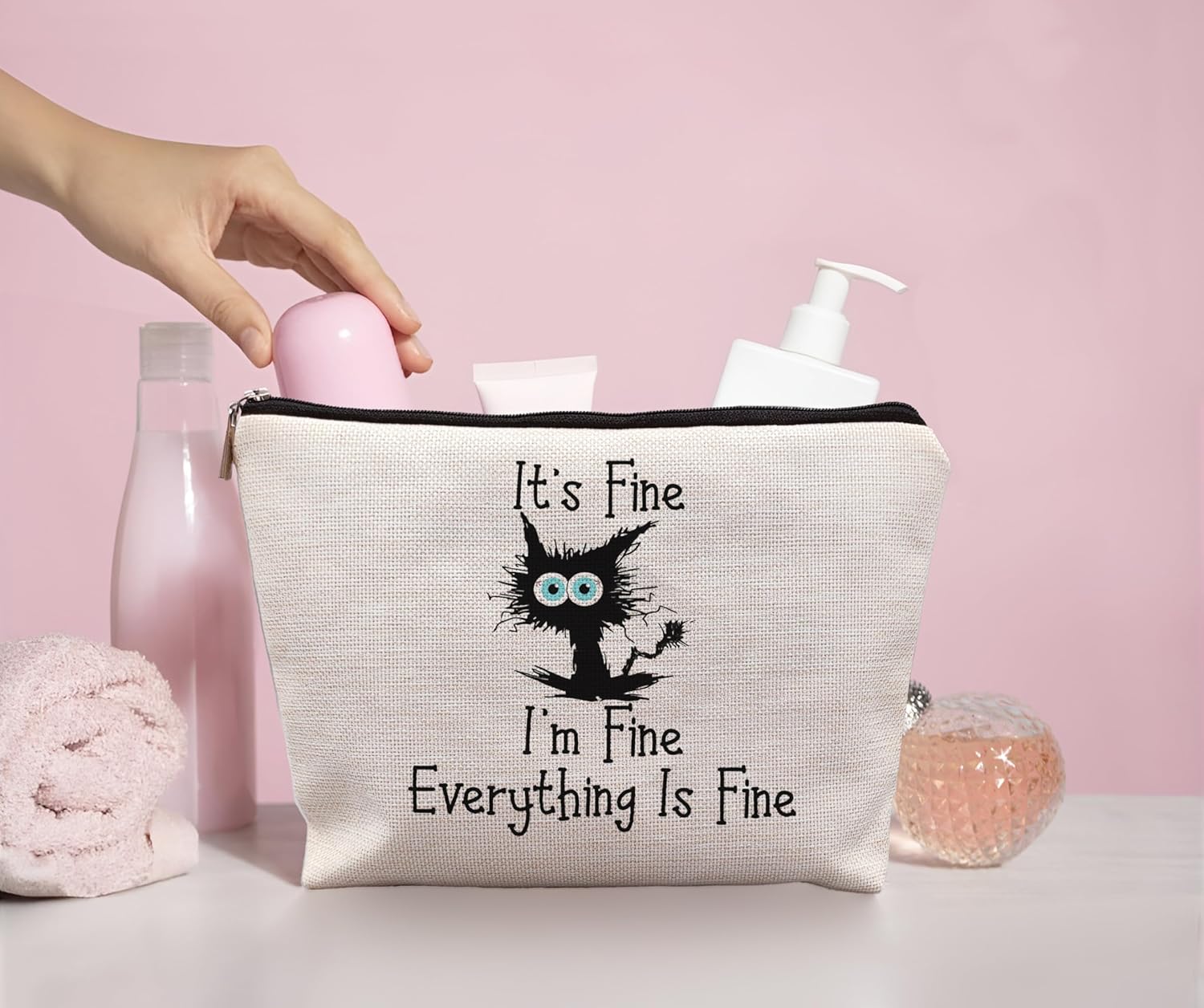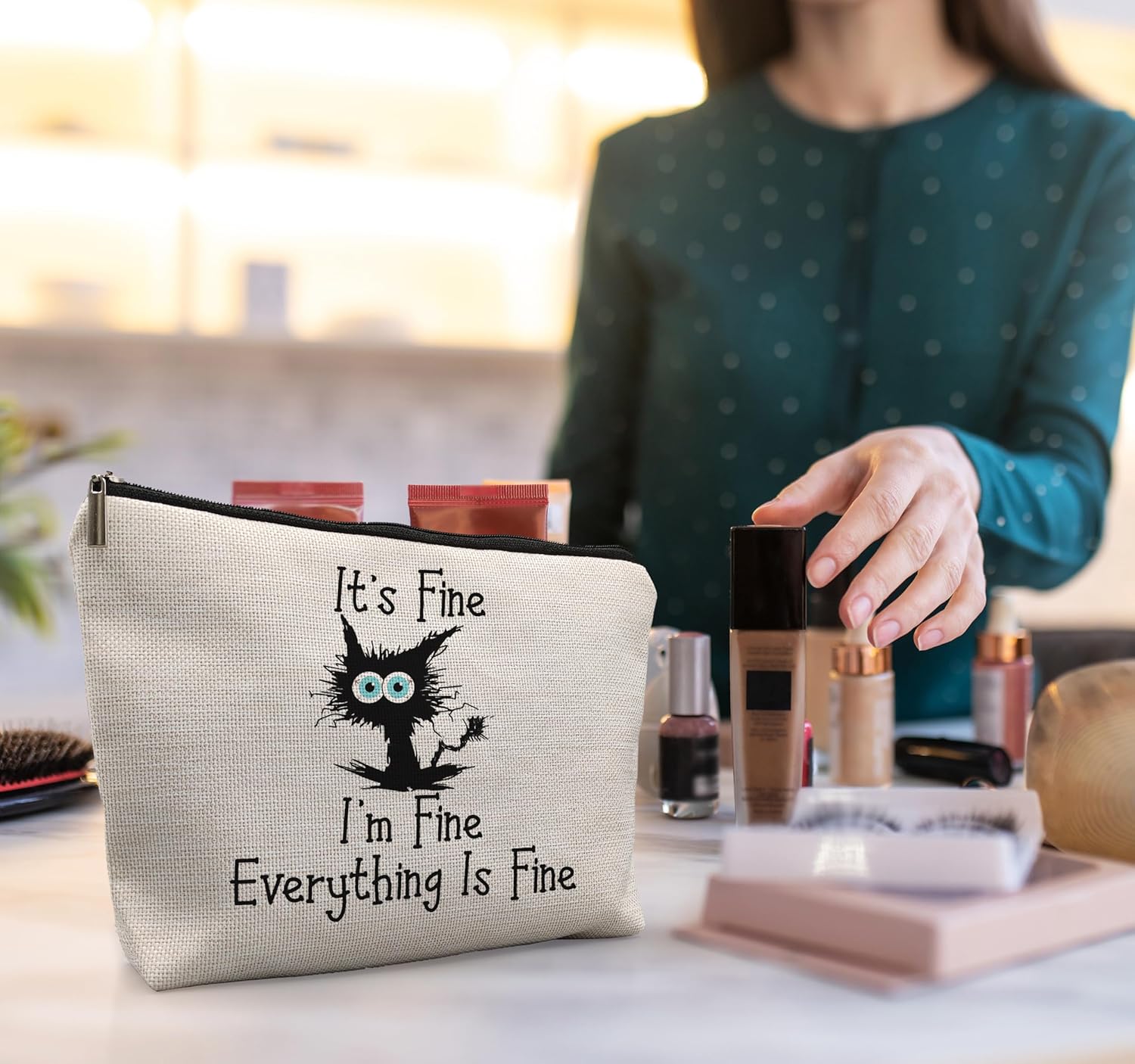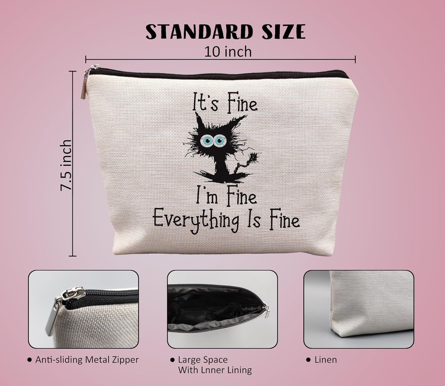 Cat Makeup Bag,Cat Gifts For Cat Lovers,Cat Themed Gifts,It’s Fine I’m Fine Everything Is Fine Makeup Cosmetic Bag Pouch,Gifts For Cat Owners Women Teen Girls