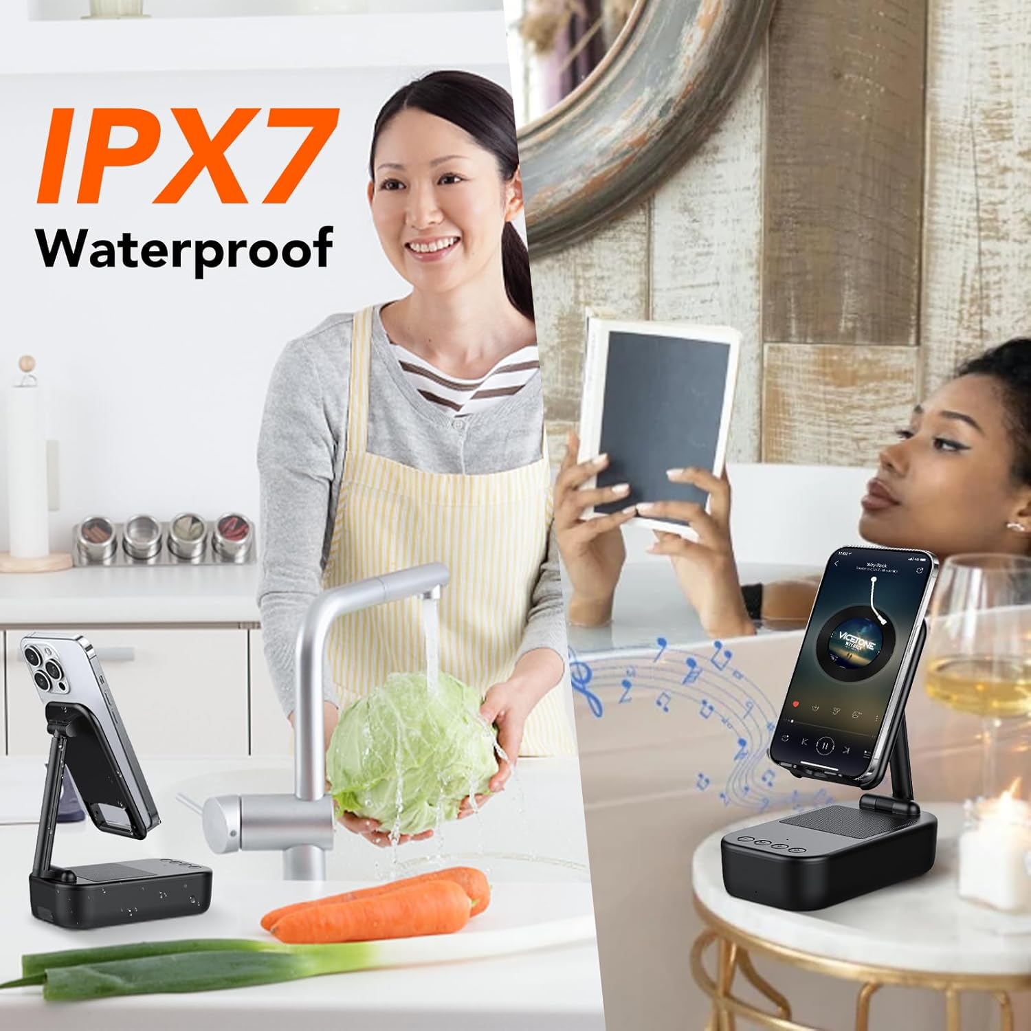 Cell Phone Stand Portable Bluetooth Speakers Wireless, 10W Super Bass, 24H Playtime, IP7 Waterproof Speaker, Gifts for Women/Men/Mom/Dad Compatible with Phone/Pad