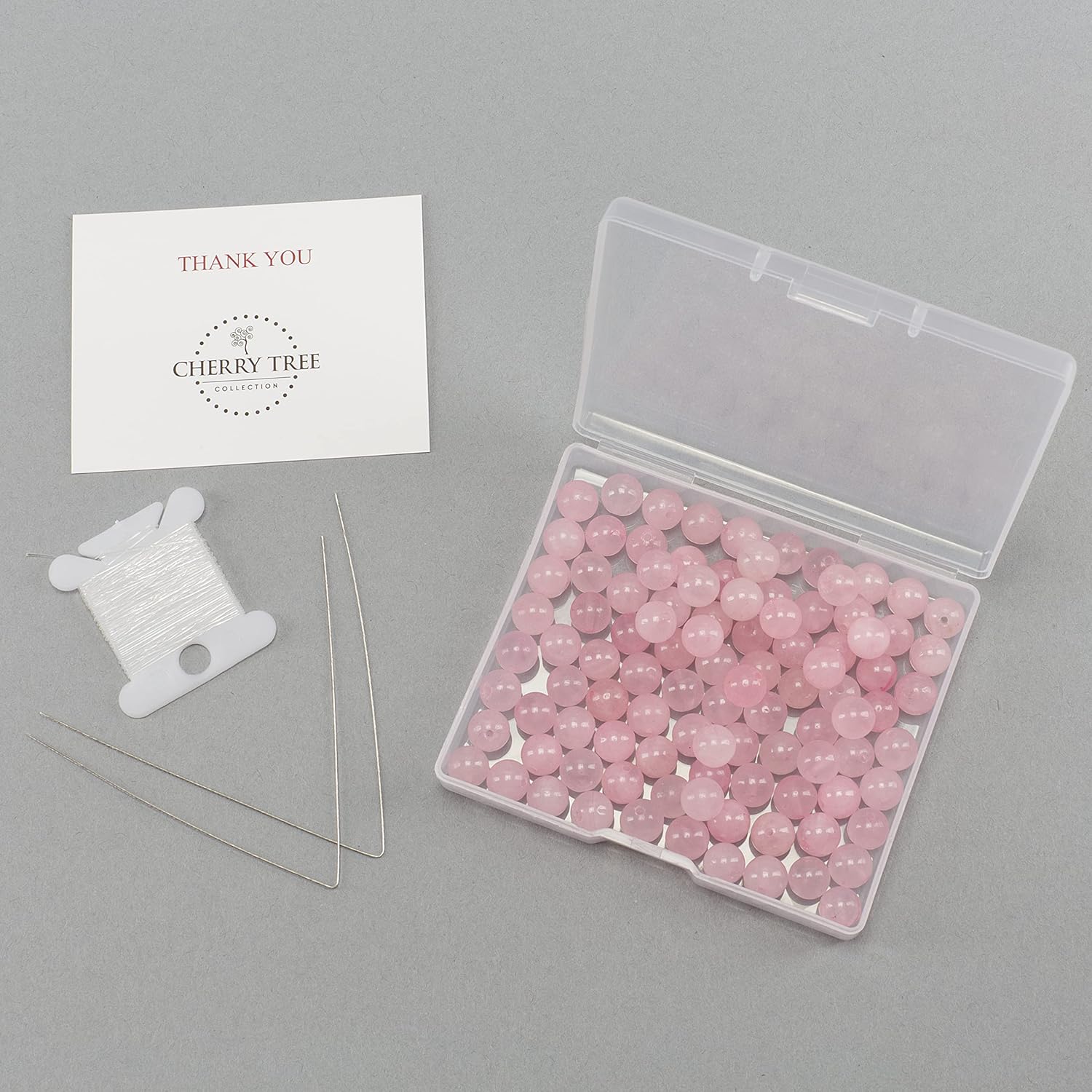 Be the first to review “Cherry Tree Collection | 100PCS 8mm Rose Quartz Gemstone Round Beads for Jewelry Making | Includes Storage Box, Elastic String, and Needles”