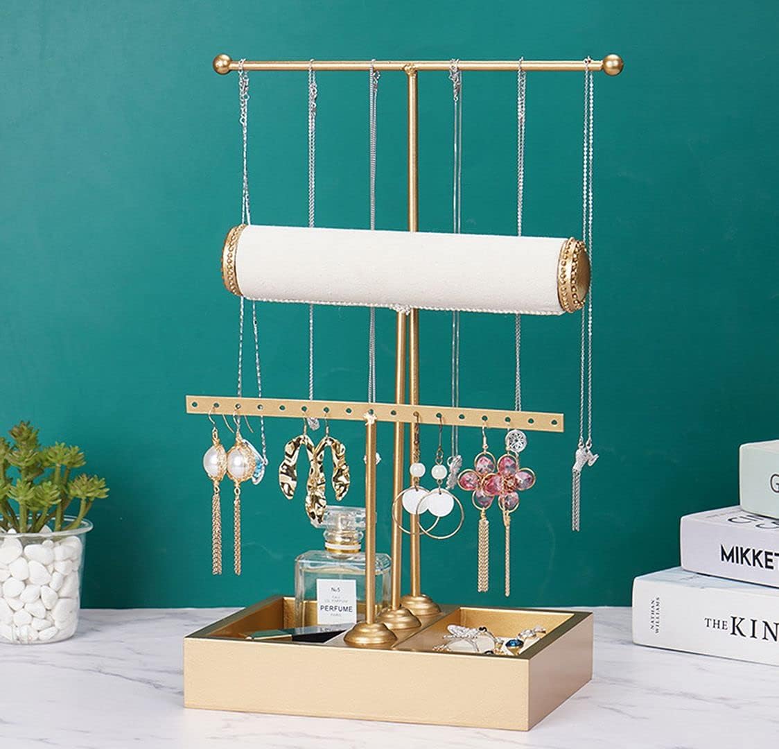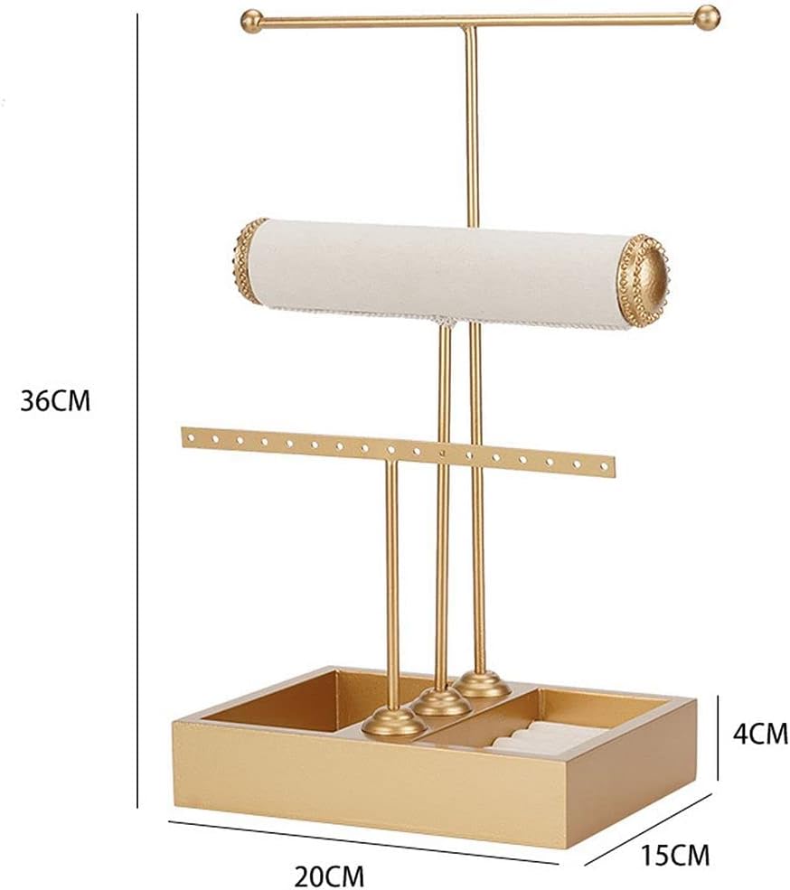 [DESIGN] Exquisite appearance and sturdy design. A stylish addition to any vanity. Featuring three tier with removable bars to hold and display your jewelry collection, keeping your dresser clutter-free. T-Bar design of our jewelry stand keeps all of your jewelry in sight and easily accessable, which is sure to help you organize your jewelry collection without taking up much space.